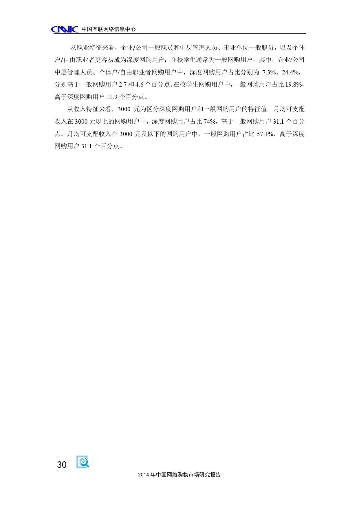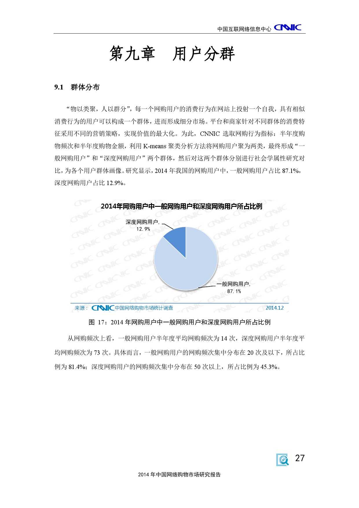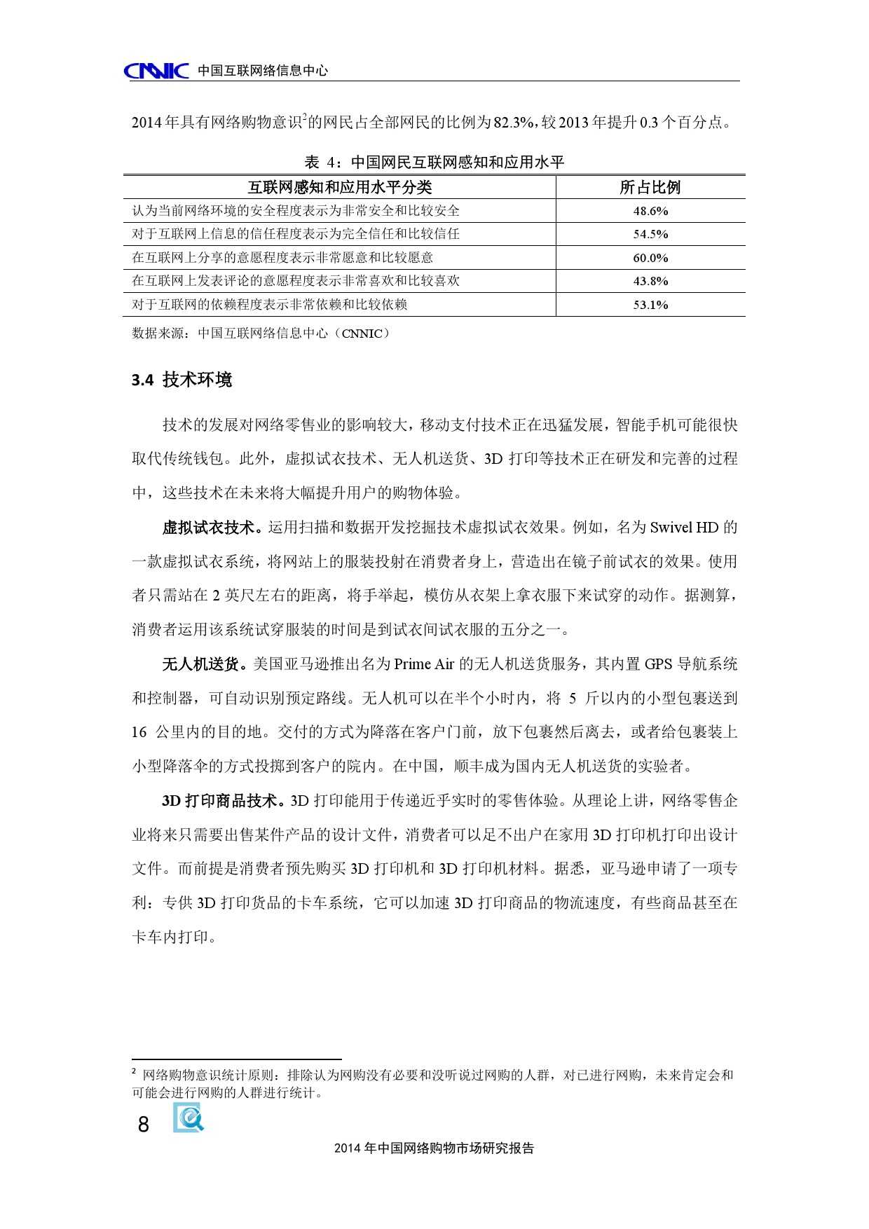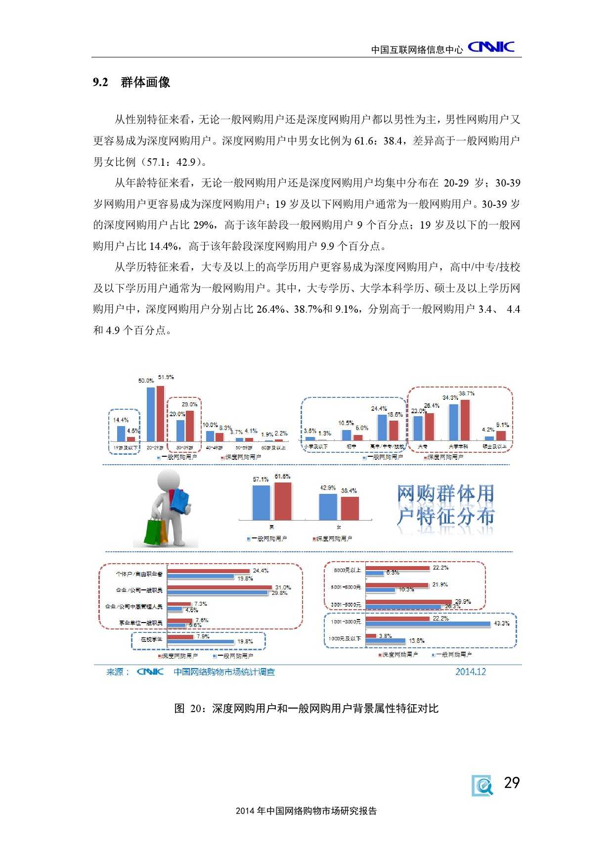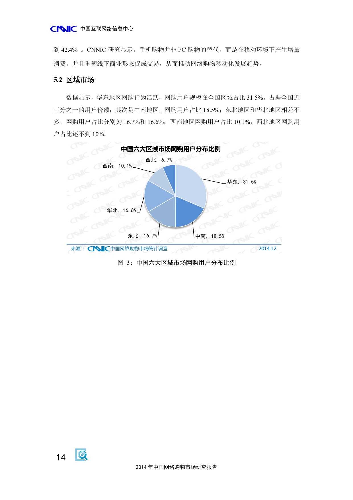 近日,中国互联网络信息中心(CNNIC)发布《2014年中国网络购物市场研究报告》,报告显示,截至2014年12月,我国网络购物用户规模达到3.61亿,较2013年底增加5953万人,增长率为19.7%;我国网民使用网络购物的比例从48.9%提升至55.7%。与此同时, 2014年手机购物市场发展迅速。2014年我国手机网络购物用户规模达到2.36亿,增长率为63.5%,是网络购物市场整体用户规模增长速度的3.2倍,手机购物的使用比例提升了13.5个百分点,达到42.4% 。