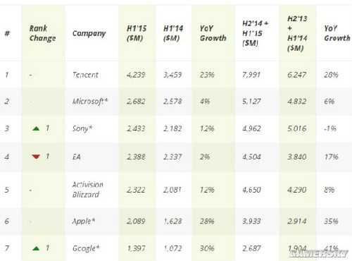 2015年最赚钱游戏公司腾讯 微软第二索尼第三