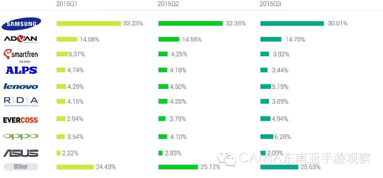 ·三星市场占有率仍然遥遥领先,其龙头地位暂时无法撼动,但数据呈缓慢下滑趋势。ADVAN作为亚军,保持缓慢增长。