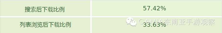 ·搜索后进行下载行为的比例远远高于应用列表浏览后进行的下载。