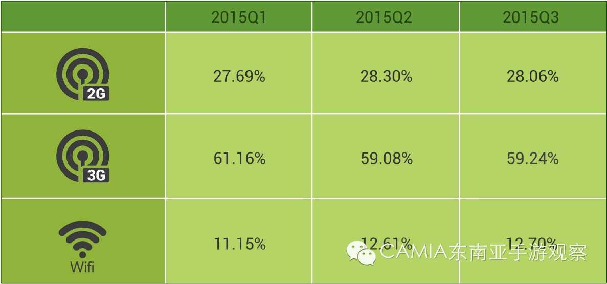 ·用户手机网络分布情况和前两季度相比变化不大, 3G用户最多,稳定在约60%左右的市场占有率