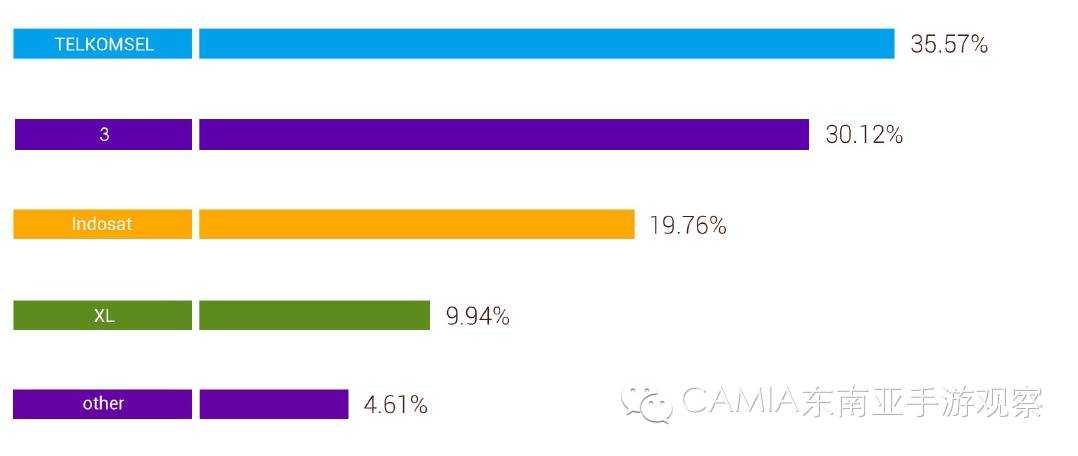 ·印尼三大运营商(TELKOMSEL、Indosat、XL)占据了近70%的市场,其中TELKOMSEL以35.57%遥遥领先。和记黄埔(3)实力不容小觑,以30.12%的市场占有率紧逼其后。