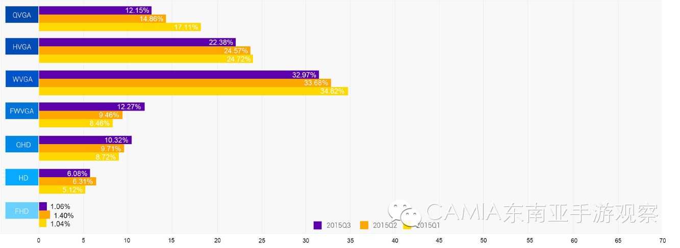 ·手机分辨率依然绝大多数属于WVGA,约33%的市场占有率。
