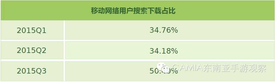 ·所有有下载行为的用户中,通过搜索进行下载的占比50.4%,较2015 Q1和Q2有大幅增长。