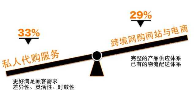 超过三成(33%)仍然选择“淘宝等网站上私人提供的代购服务”,选择其他两种消费方式的消费者比例略低,均为29%。尼尔森副总裁李昕认为,私人代购的存在空间主要得益于差异性,灵活性和时效性上。相对于完整的产品供应体系与物流体系,更全面地满足消费者需求似乎更受青睐。