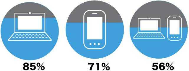 在选择跨境网购设备时,PC端仍然是消费者最常使用的设备,相对国内网上购物的pc使用率更高,使用率达到85%,移动端略低71%,超过半数消费者(56%)会同时使用电脑和手机进行跨境网购。