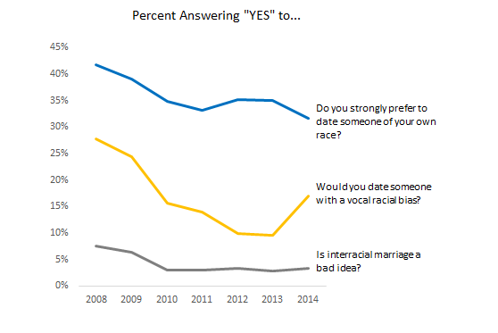 OKCupid上的一张图:反映了种族对于人们约会意愿的影响