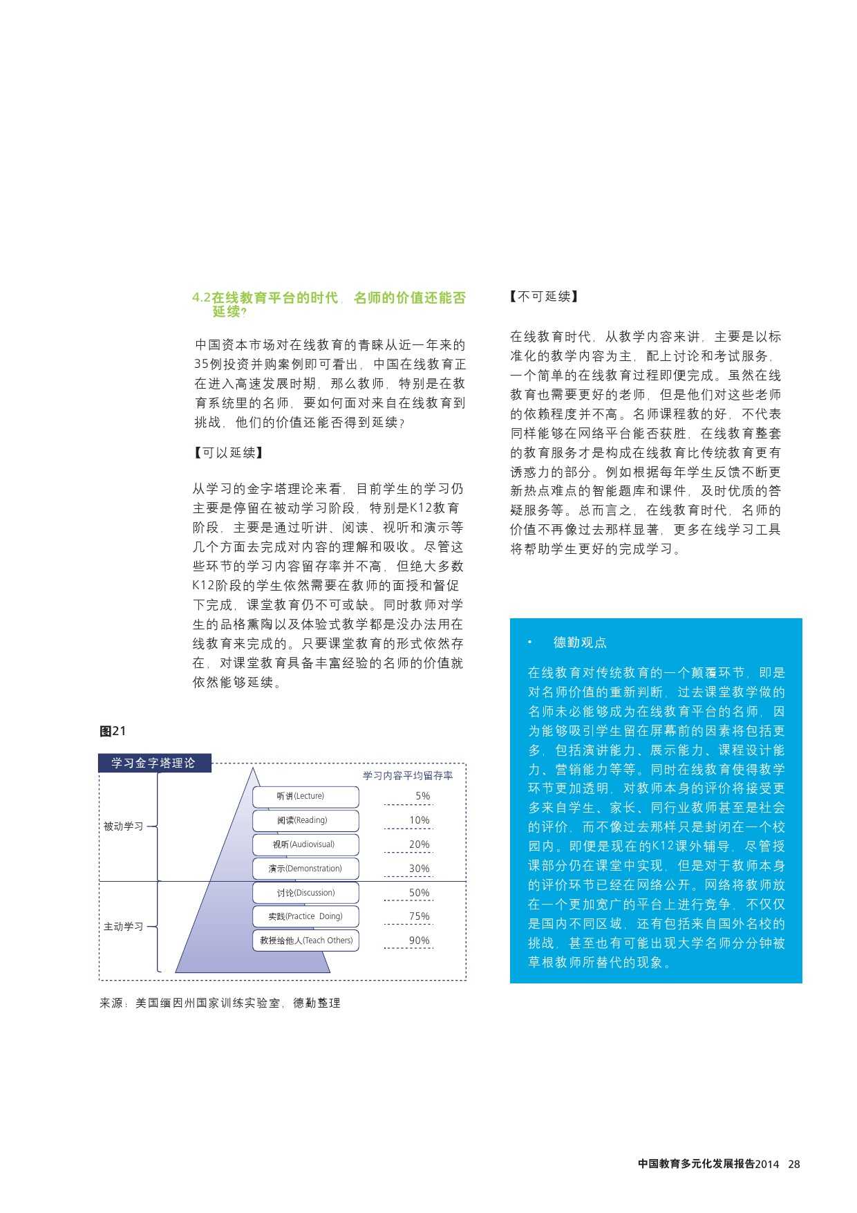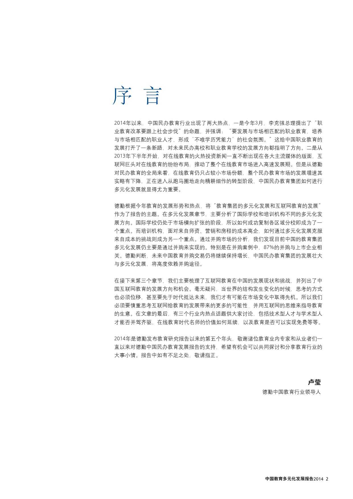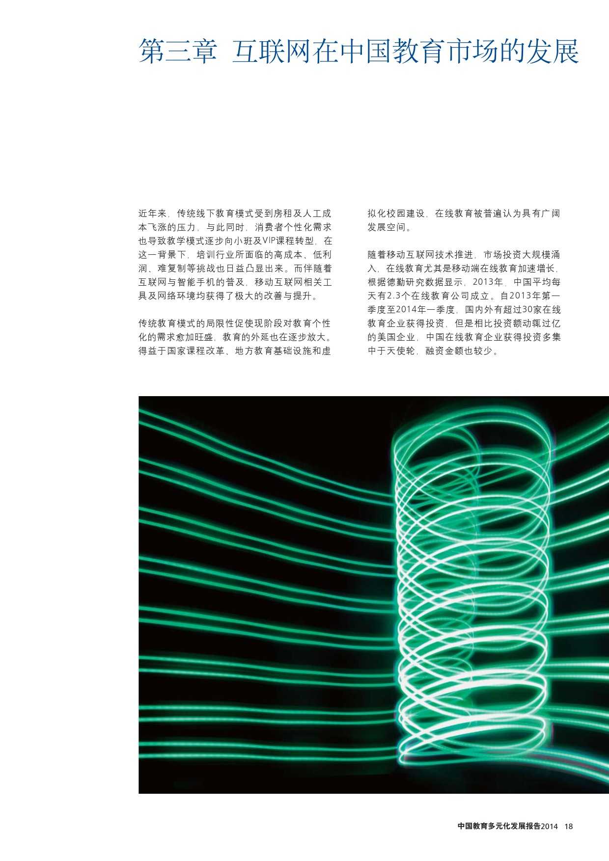 德勤:2014年中国教育多元化发展报告 更多阅读:eMarketer:中国可穿戴设备销量仍然保持两位数增速教室的未来:K-12教育新趋势报告好未来:2020财年Q1营收7.03亿美元,净亏损为730万美元教育部:2017年全国教育事业发展统计数据公报新东方:学校扩张见成效,营收同比增长41.2%至6.181亿美元好未来:4Q18营收同比增长59.4%,线上课程增长明显新东方:2Q18财报扩张加速营收加速,但利润承压好未来:3Q18财报数据,扩张放缓,运营优化提升效率HSBC:2017年全球教育报告经合组织:2025年教育概览腾讯课堂:2014年K12教育市场分析报告经合组织:2023年教育报告爱学习:K12教育培训机构OMO专项调研报告新东方:2019Q4财季暑期低价班注册人次76.54万同比增4%德勤:2014 年银行业年报分析