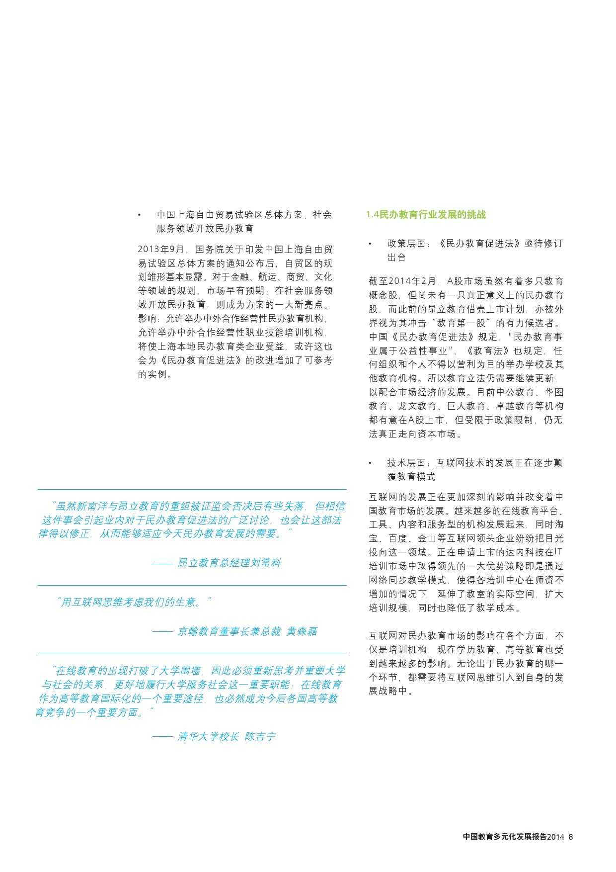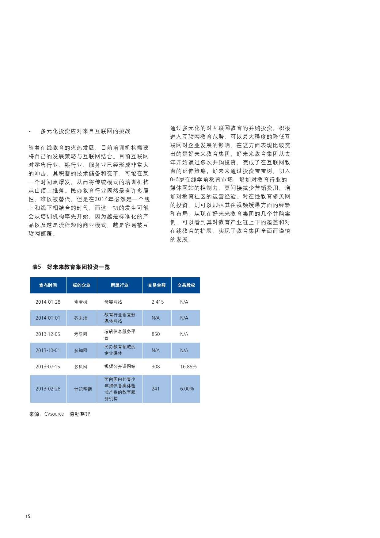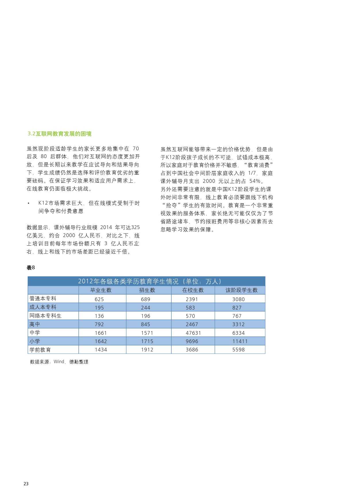 德勤:2014年中国教育多元化发展报告 更多阅读:eMarketer:中国可穿戴设备销量仍然保持两位数增速教室的未来:K-12教育新趋势报告好未来:2020财年Q1营收7.03亿美元,净亏损为730万美元教育部:2017年全国教育事业发展统计数据公报新东方:学校扩张见成效,营收同比增长41.2%至6.181亿美元好未来:4Q18营收同比增长59.4%,线上课程增长明显新东方:2Q18财报扩张加速营收加速,但利润承压好未来:3Q18财报数据,扩张放缓,运营优化提升效率HSBC:2017年全球教育报告经合组织:2025年教育概览腾讯课堂:2014年K12教育市场分析报告经合组织:2023年教育报告爱学习:K12教育培训机构OMO专项调研报告新东方:2019Q4财季暑期低价班注册人次76.54万同比增4%德勤:2014 年银行业年报分析