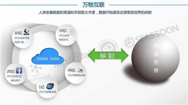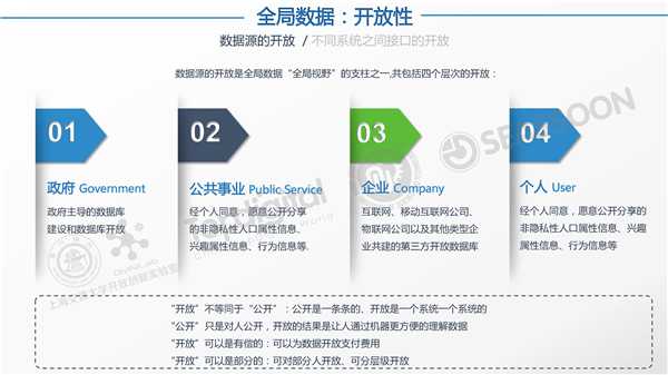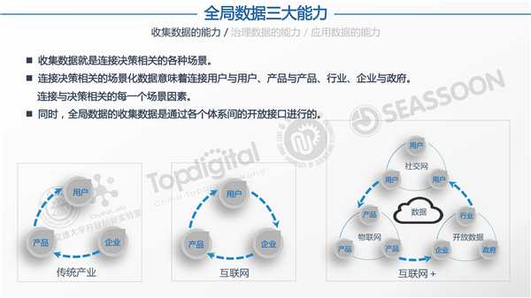 收集数据就是连接决策相关的各种场景。连接决策相关的场景化数据意味着连接用户与用户,产品与产品,行业、企业与政府,连接与决策相关的每一个场景因素。同时,全局数据的数据收集是通过各个体系间的开放接口进行的,这就保证了数据开放的安全性和可控性,以及可追溯性。