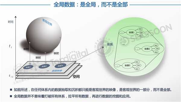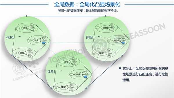 如前所述,在任何体系内的数据抽取和沉积都只能是客观世界的映像,是客观世界的一部分,而不是全部。全局数据的“全局”并不意味着拉平所有数据,进行数据的挖掘和应用,而是要打破体系与体系间的壁垒,凸显场景化的连接。