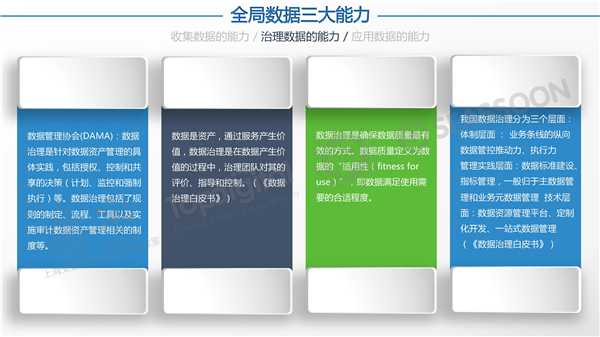 全局数据同时是被赋能的数据,拥有三大能力:收集数据的能力、治理数据的能力、应用数据的能力。