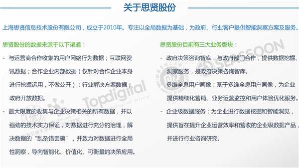 2015年11月9日,全局数据智能洞察服务商-思贤股份联合专业跨媒体研究服务机构TopDigital、上海交通大学OMNI LAB实验室、华东理工大学公共管理学系发布“2015全局数据白皮书”,提出OMNI DATA全局数据的全新概念。从全局数据产生的背景切入,深度剖析了我们为何需要OMNI DATA(全局数据),它呈现出哪些特点,拥有哪些能力,又存在怎样的界限,可以解决怎样的现实问题等要点。该研究旨在帮助数据产业的相关从业者,从更高的层面对数据进行洞见,更全局的把握数据时代的变革。