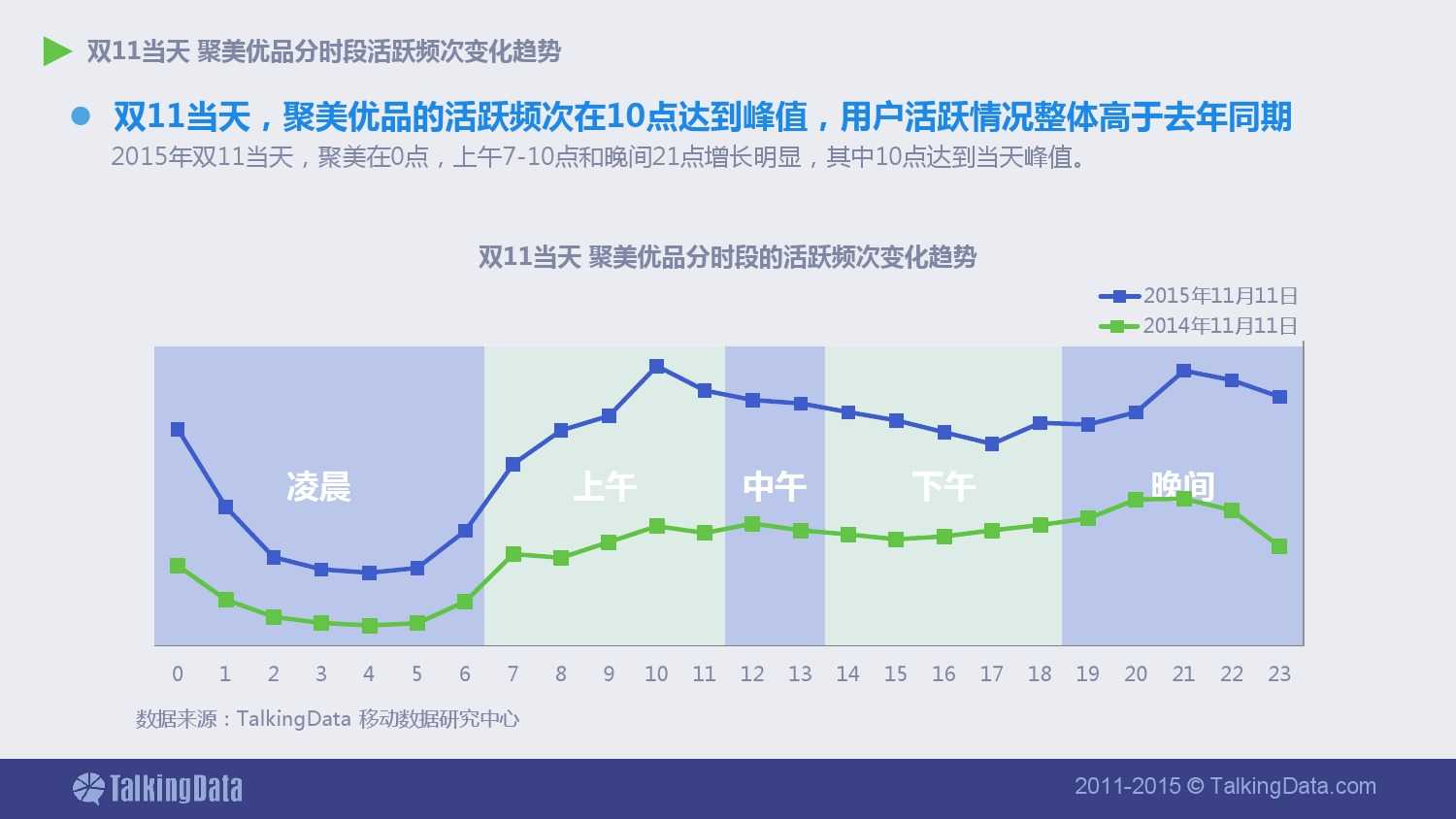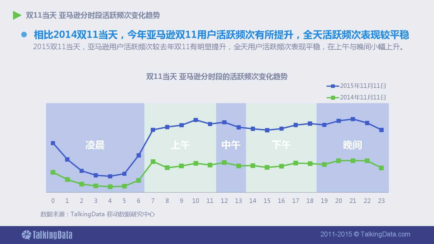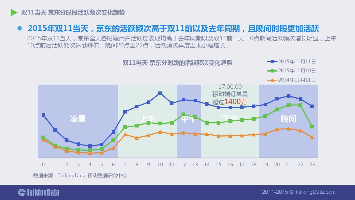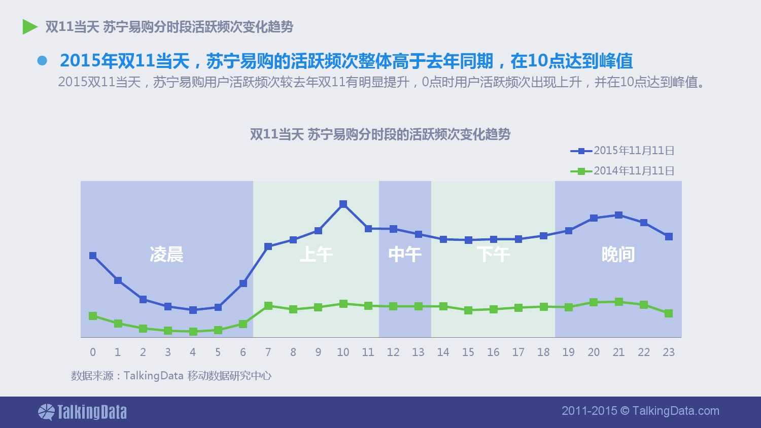 TalkingData:见证2015年双11购物狂欢节移动应用的脉搏 更多阅读:TalkingData:2015年奔跑吧兄弟2电视直播观看人群用户画像TalkingData:2015年出行O2O移动应用行业报告极光大数据:2018年双11数据研究报告TalkingData:2015年上门O2O移动应用行业报告TalkingData:2015年8月移动游戏BenchmarkTalkingData:2015年Q2 Apple Watch数据洞察报告ComScore:2015年美国移动应用报告酷传:2015年App年度数据报告2015年生活服务类移动应用白皮书“双11”电商数据大揭秘: DAU与支付订单对比意味着什么?Sensor Tower:2019年双11中国App Store购物应用总下载量创历史新高CNNIC:2015年第37次中国互联网络发展状况统计报告–网民规模与结构(七)CNNIC:2015年第37次中国互联网络发展状况统计报告–个人互联网应用发展状况(九)CNNIC:2015年第37次中国互联网络发展状况统计报告–企业应用篇(三)CNNIC:2015年第37次中国互联网络发展状况统计报告–企业“+互联网”广泛应用(五)