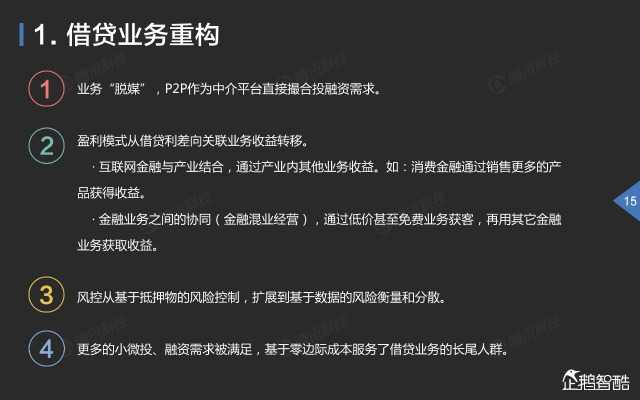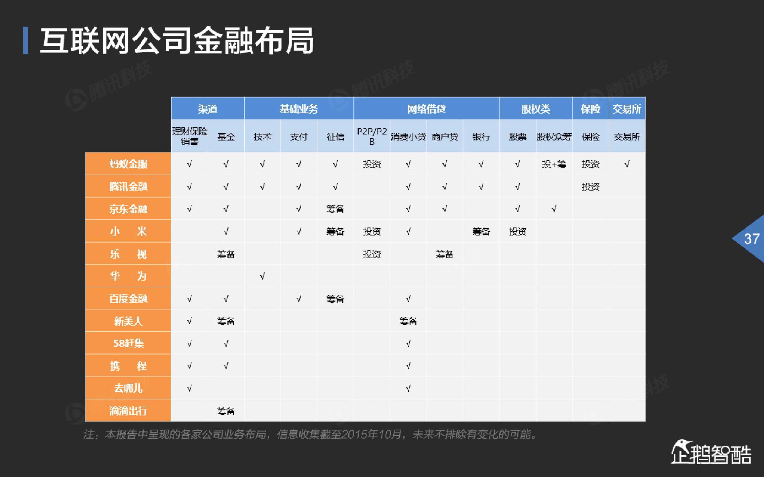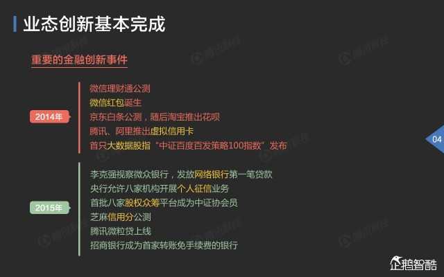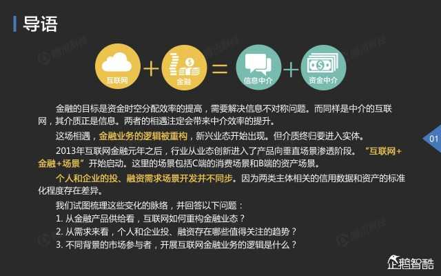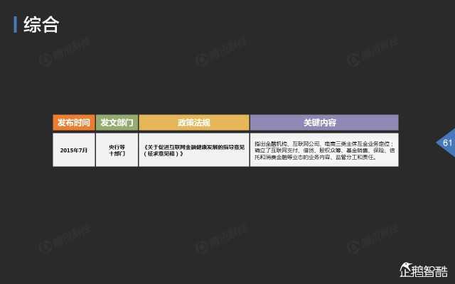 企鹅智库:2015中国互联网金融趋势报告 更多阅读:企鹅智库:2018新媒体趋势报告2015中国互联网电视发展研究报告凯络:2015中国跨境网购报告Linkedin:2015中国互联网行业人才库报告企鹅智库:中国短租行业“真相报告”企鹅智库:2019-2020中国互联网趋势报告Deloitte:中国养老住宅—现状和发展趋势报告DCCI:2015年中国数字营销趋势报告友盟:2015年Q1中国移动互联网趋势报告-新型服务在移动端发力LinkedIn:2015年中国人才招聘趋势报告中国消费趋势报告:三大新兴力量引领消费新经济2015上半年小米应用商店报告2015年Q1中国互联网企业Top500排行榜榜单福布斯:2015日本富豪榜 优衣库创始人柳井正重夺首富用数据说一个2015营销世界的故事