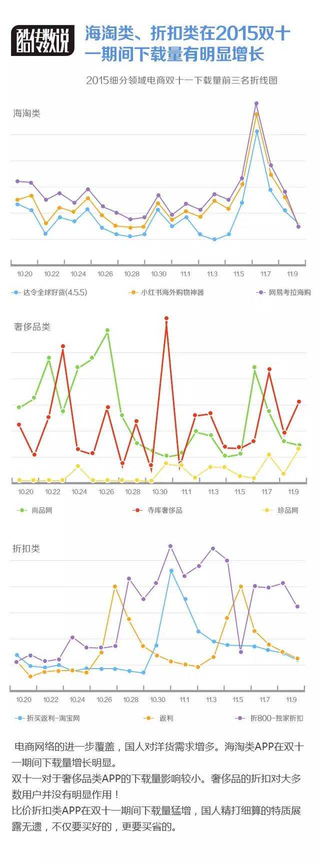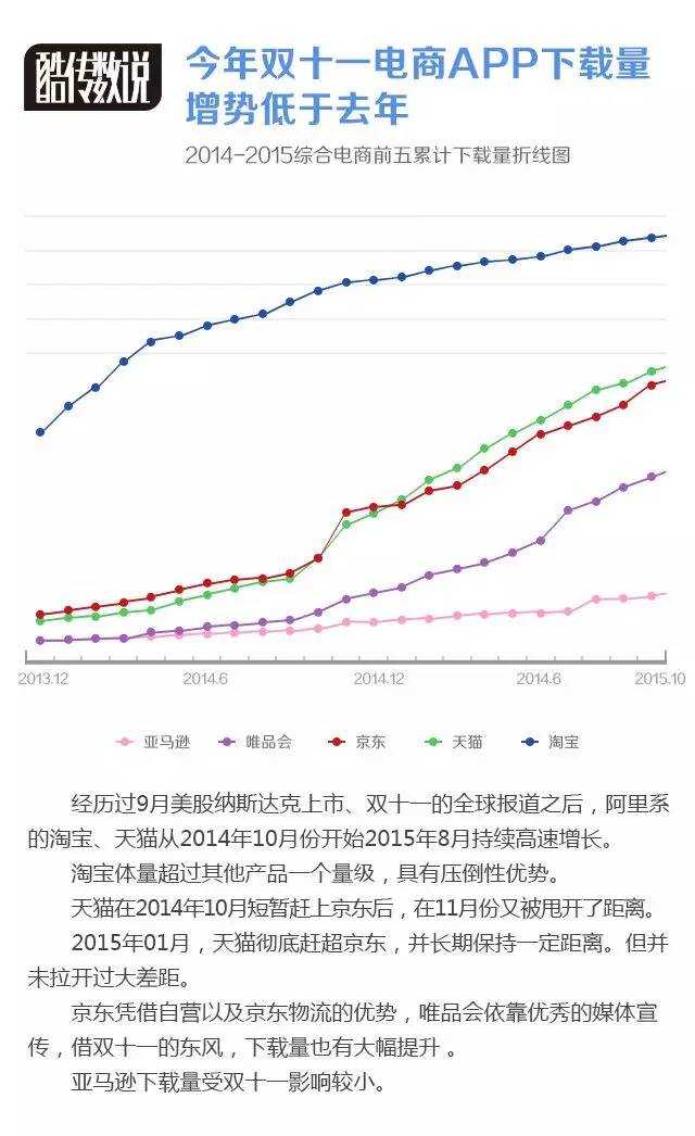 酷传数说:火爆双十一的背后,电商行业集体的冷与热 自2009年阿里筹划第一届“双十一”开始,今年已经进入到“七年之痒”。依靠着阿里强悍的市场运营能力,现在已是阿里商标的“双十一”,不仅在国内引发电商行业直面跟风,在国际上也形成了举足轻重的影响。 在“双十一”风风火火走过的这七年里,中国的电商行业也经历了大规模的裂变,大量新品类的覆盖、垂直细分领域的爆发令人目不暇接。国内最大的APP上传和监控平台酷传发布的《酷传数说:火爆双十一的背后,电商行业集体的冷与热》,带来了关于电商行业和“双十一”纠葛的详尽分析: 更多阅读:Trustdata:2020年中国下沉市场电商行业发展洞察分析Trustdata:2016年中国移动互联网电商行业发展分析报告村综合研究所&天猫新品创新中心:中国电商行业日系商品观察极光大数据:2018年电商行业研究报告腾讯财报:2022年Q1腾讯总营收为1354.71亿元 环比下降6%欧睿数据:电商行业增速将从两位数降至个位数 退货率增至60%数字之旅的时代启幕——空间计算Demand Gen :制造商将数字转换扩展到销售和营销报告中电联:2021中国电力行业年度发展前程无忧:2021年Q1集成电路/半导体市场供需报告乐普医疗新冠病毒抗体胶体金法检测试剂盒、红外测温仪等产品已供往数十国家CCFA:2019年中国超市百强TCL实业、TCL科技加入联合国全球契约组织,携手共建更好世界未来科技的交汇点: BUSINESS GOVirtual科技博览及会议 (BGOV 2024) 凝聚业界,探索创新与实践电资办:2024年6月17日-6月23日全国电影票房周报