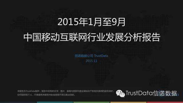 TrustData:2015年Q3中国移动互联网行业发展分析报告 更多阅读:TrustData:2015年十一长假中国移动互联网用户行为分析报告Trustdata:2019年中国移动互联网行业发展分析报告Trustdata:疫情影响下中国移动互联网2020年1月份行业分析报告Trustdata:2021年Q1中国移动互联网行业发展分析报告Trustdata:2019年7月移动互联网全行业排行榜Trustdata:2020年Q3中国移动互联网行业发展分析报告Trustdata:2020年12月移动互联网全行业排行榜Trustdata:2018年11月移动互联网全行业排行榜Trustdata:2019年3月移动互联网全行业排行榜TrustData:2018年7月移动互联网全行业排行榜Trustdata:2018年10月移动互联网全行业排行榜Trustdata:2018年5月移动互联网全行业排行榜Trustdata:2016年中国移动互联网电商行业发展分析报告Trustdata:2016年Q3中国移动互联网行业发展分析报告Trustdata:2020年2月份中国移动互联网行业分析报告
