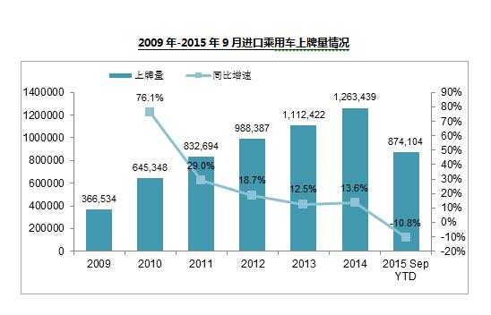2015年11月15日,在第十二届中国进口汽车高层论坛上,中进汽贸发布2015年进口车市场年度报告及未来中长期趋势报告。前9月中国进口汽车80.1万辆,同比大幅下滑23.9%。1-9月进口汽车市场销售上牌87.4万辆,同比下滑10.8%。9月行业库存深度4.9个月,9月平均优惠9.29万。销量前十车型八款为SUV,其中普拉多、X5、揽胜分列前三。