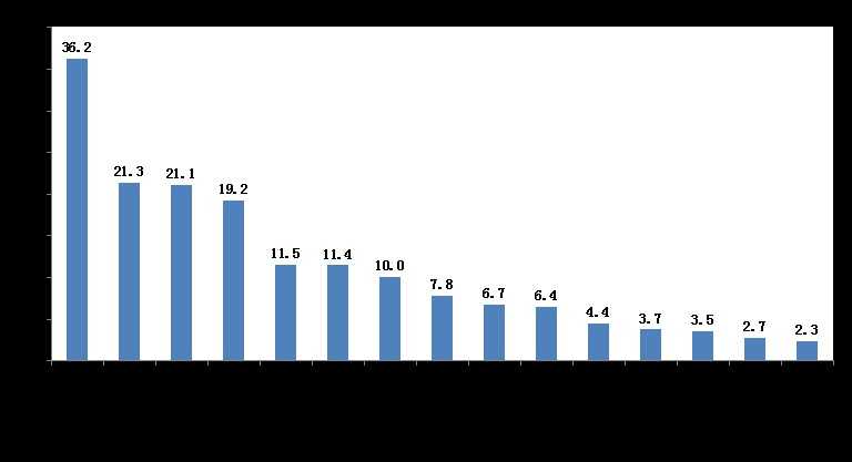 图17 20岁及以上人群不参加体育锻炼的各种原因人数百分比
