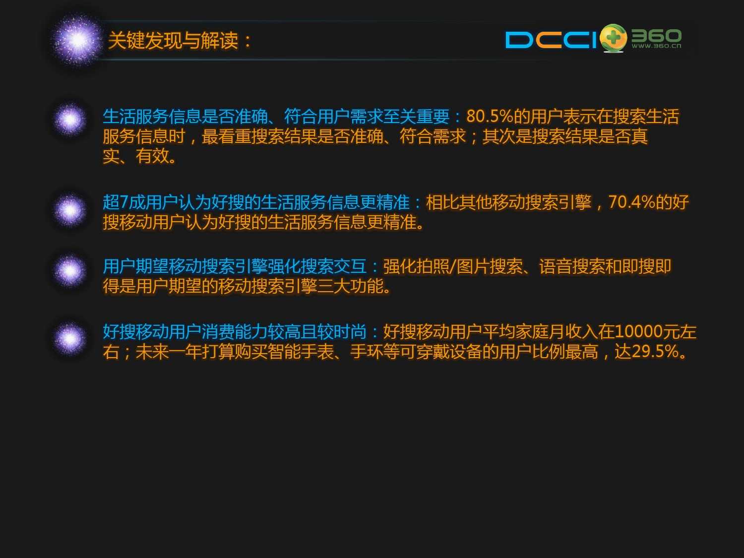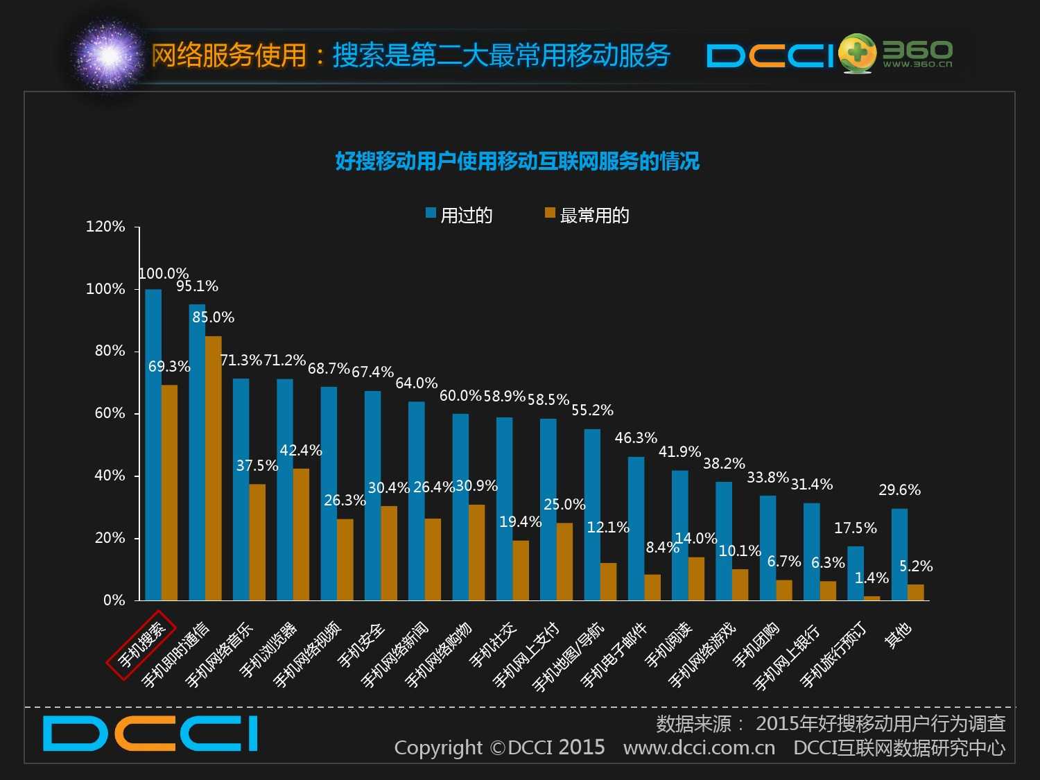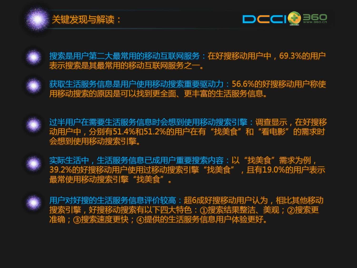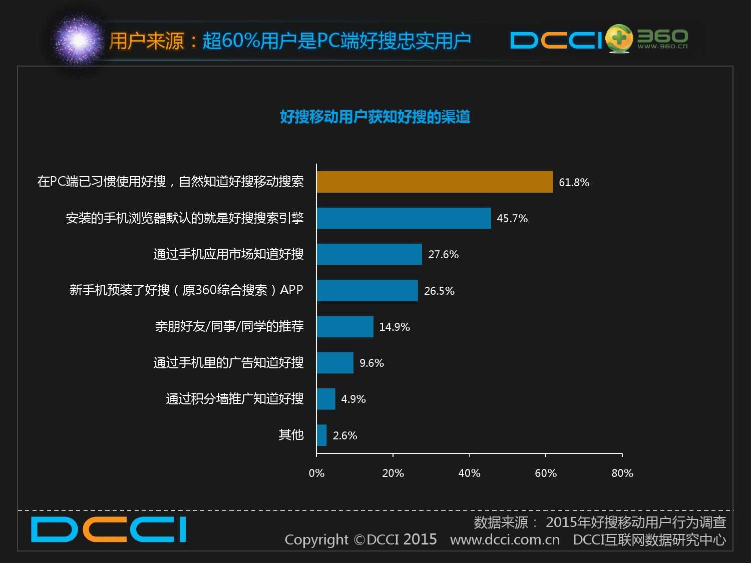 DCCI:2015年好搜移动用户研究报告 更多阅读:DCCI:2012年移动应用生态数据分享 DCCI:中国网络视频蓝皮书DCCI:2012中国移动应用开发者生存发展报告 DCCI:2012年APP100第一季中国移动应用热度榜DCCI:2012年APP100第二季中国移动应用潜力榜DCCI:2012年微博用户占比成年网民88.8% 规模趋稳定DCCI:2019年Q1网络外卖服务市场发展DCCI:2011年中国宽带用户调查报告DCCI:2015年中国移动支付外卖场景分析报告DCCI:2015年移动支付场景下票务消费市场研究DCCI:2015年中国数字营销趋势报告DCCI:2014年世界杯我们在#微博#上度过#DCCI:2013年中国手机游戏用户调查研究DCCI:App向何方移动,正在发生的8个转变DCCI:调查显示超7成应用越界抓取通话记录 6成抓取短信