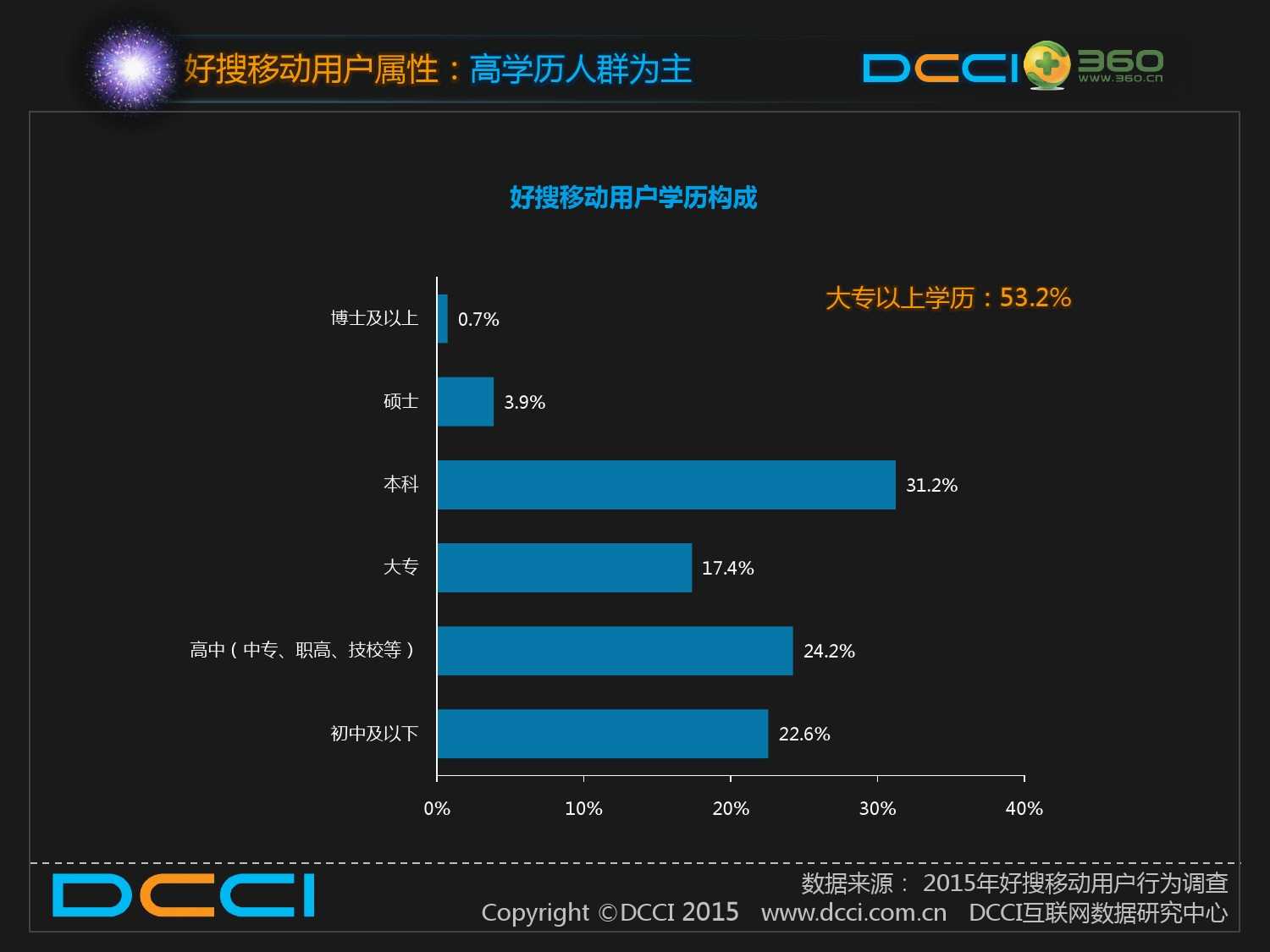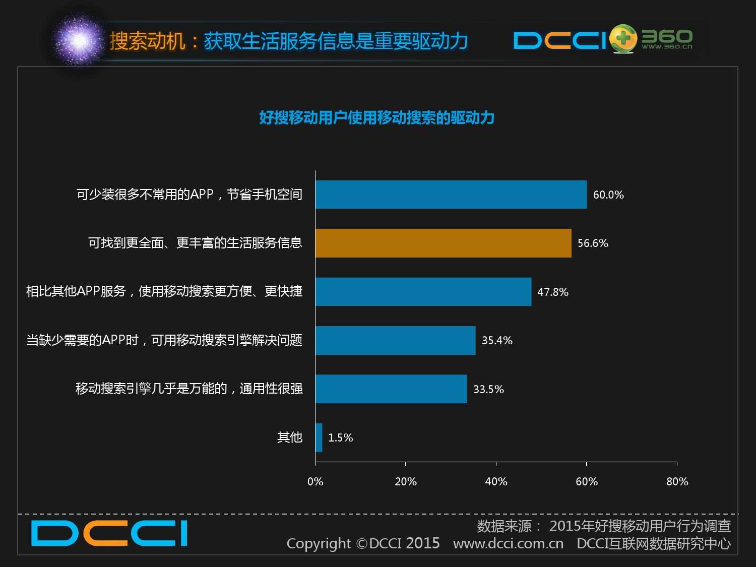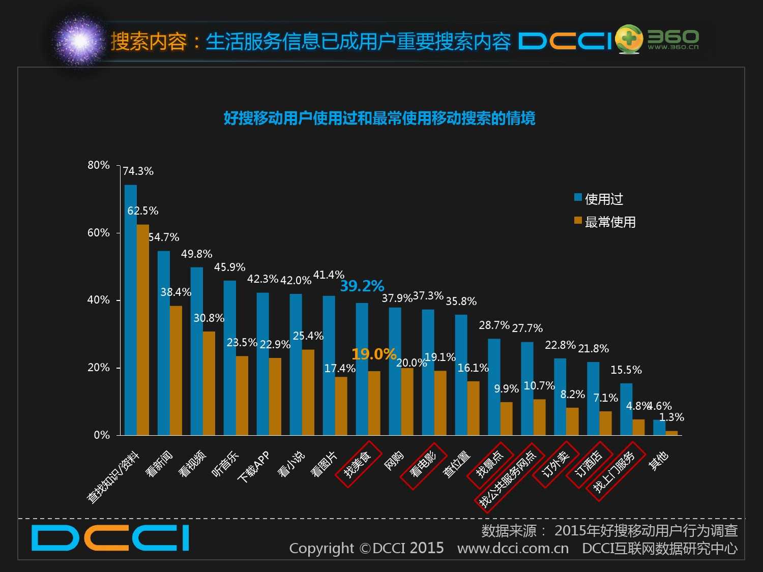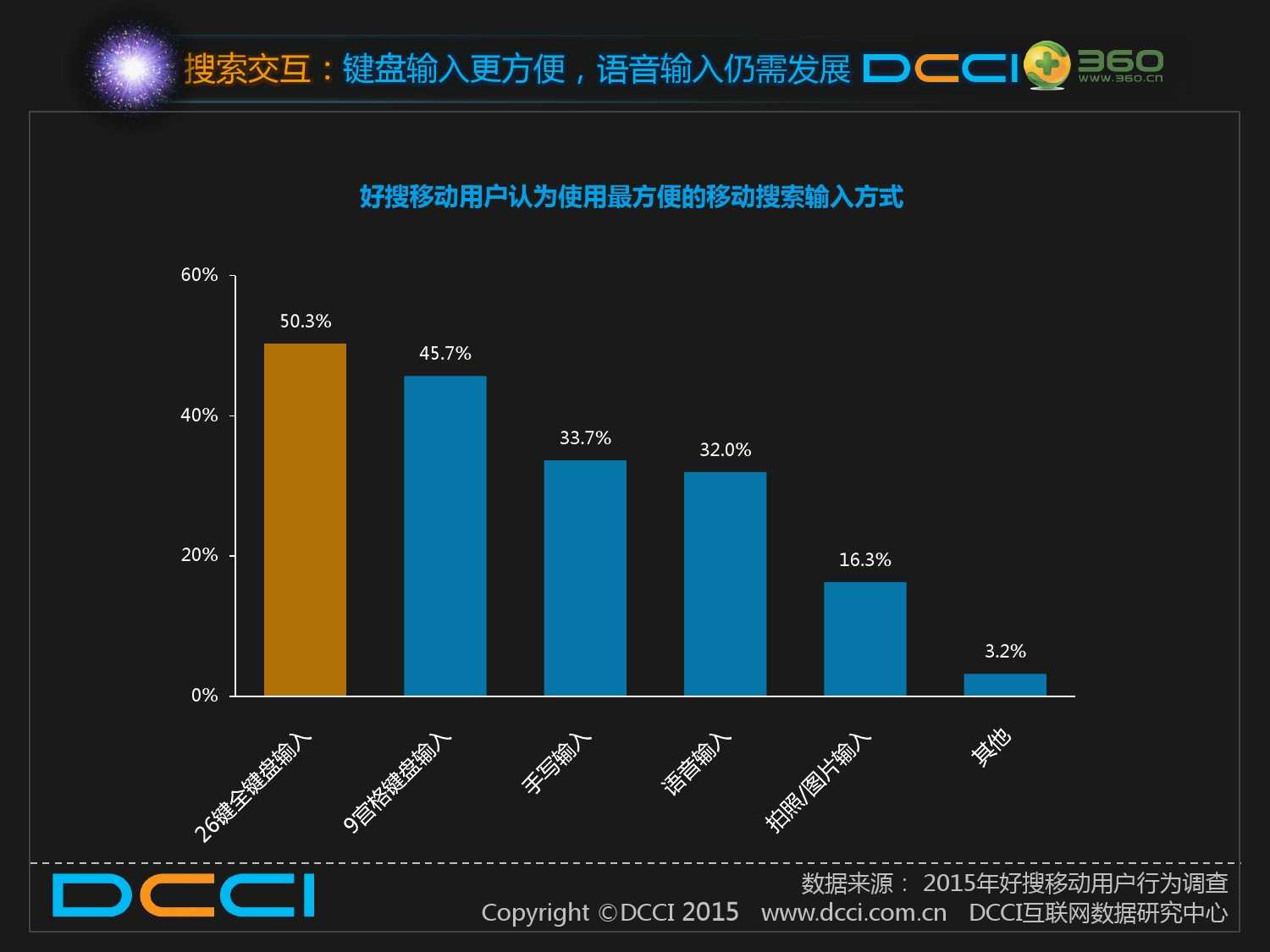 DCCI:2015年好搜移动用户研究报告 更多阅读:DCCI:2012年移动应用生态数据分享 DCCI:中国网络视频蓝皮书DCCI:2012中国移动应用开发者生存发展报告 DCCI:2012年APP100第一季中国移动应用热度榜DCCI:2012年APP100第二季中国移动应用潜力榜DCCI:2012年微博用户占比成年网民88.8% 规模趋稳定DCCI:2019年Q1网络外卖服务市场发展DCCI:2011年中国宽带用户调查报告DCCI:2015年中国移动支付外卖场景分析报告DCCI:2015年移动支付场景下票务消费市场研究DCCI:2015年中国数字营销趋势报告DCCI:2014年世界杯我们在#微博#上度过#DCCI:2013年中国手机游戏用户调查研究DCCI:App向何方移动,正在发生的8个转变DCCI:调查显示超7成应用越界抓取通话记录 6成抓取短信