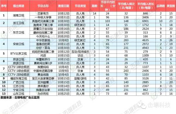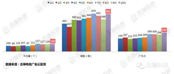 10月份环比9月,节目量增加6个、期数增加94期、广告主更是达到1-10月以来最高数量333个,更多新节目的问世使电视节目市场生机盎然。