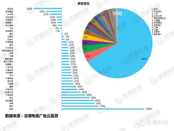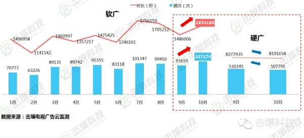 环比9月,10月硬广下降,而软广告上升。在新媒体的冲击之下,硬性广告越来越无法满足客户在市场中需求,而内容植入正逐渐崛地而起。