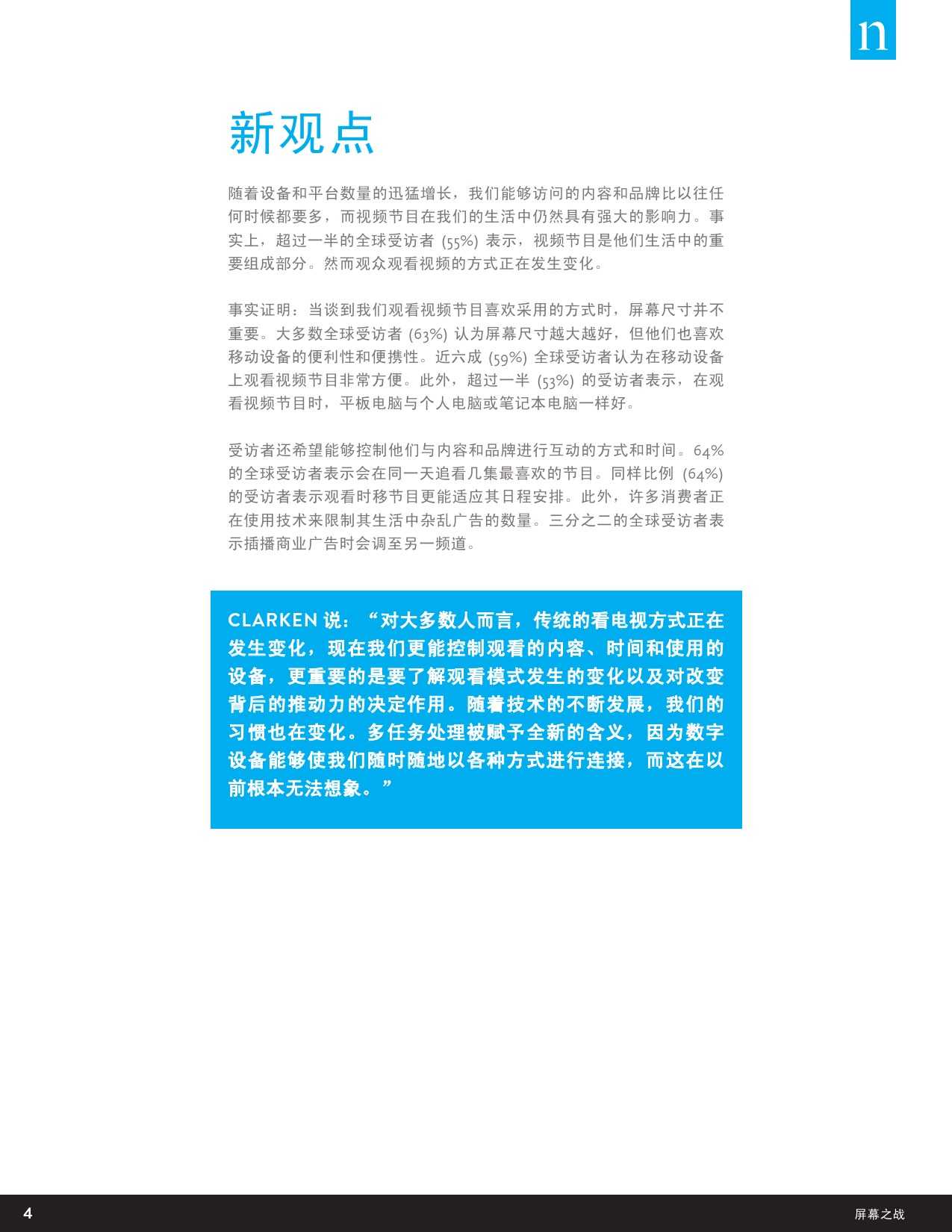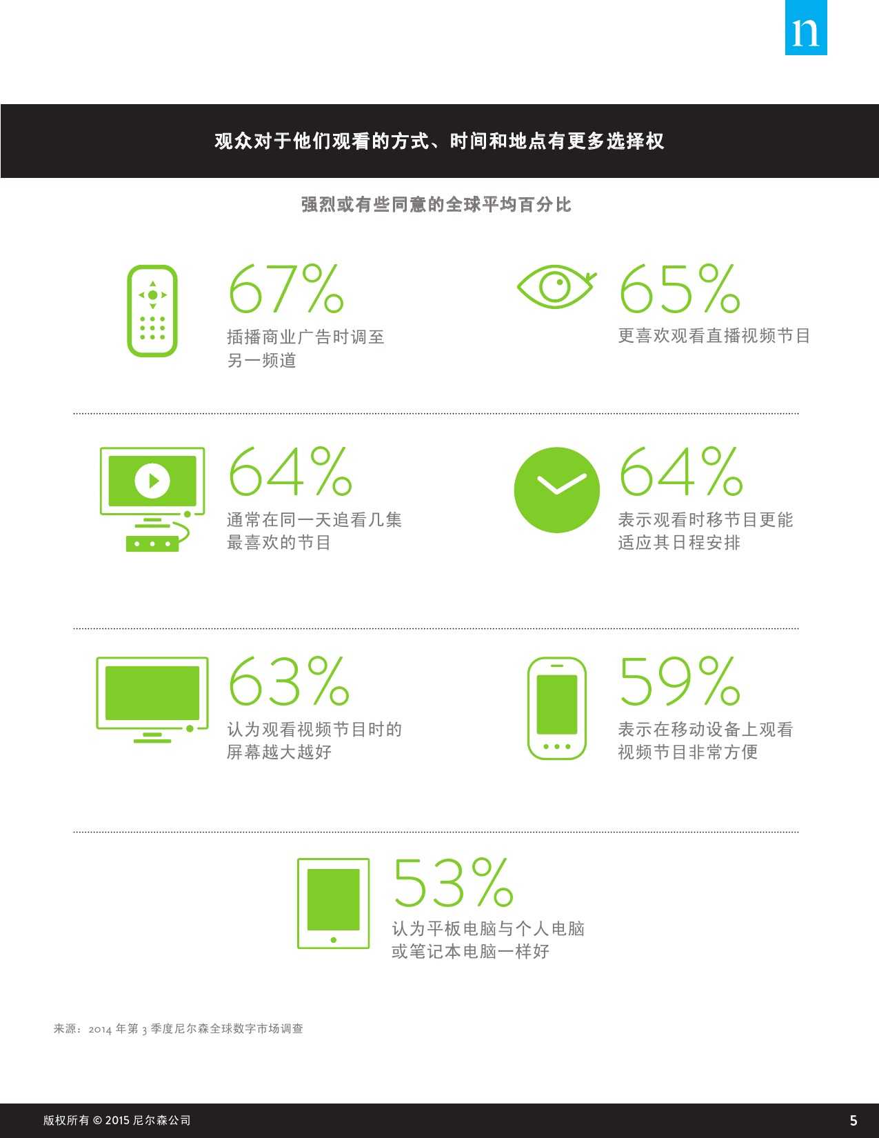 尼尔森跨屏研究报告显示,全球超过一半(55%)的用户认为视频节目很重要,相比之下,74%的中国受访者认为观看视频节目已经成为他们生活中非常重要的一部分。