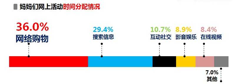 有了孩子后,妈妈们外出购物的机会大大缩减,方便快捷的网购便成为年轻妈妈们的首选。她们不仅将最多的上网时间用来网购,同时,购买孩子用品的总支出中有四成是网购花费。