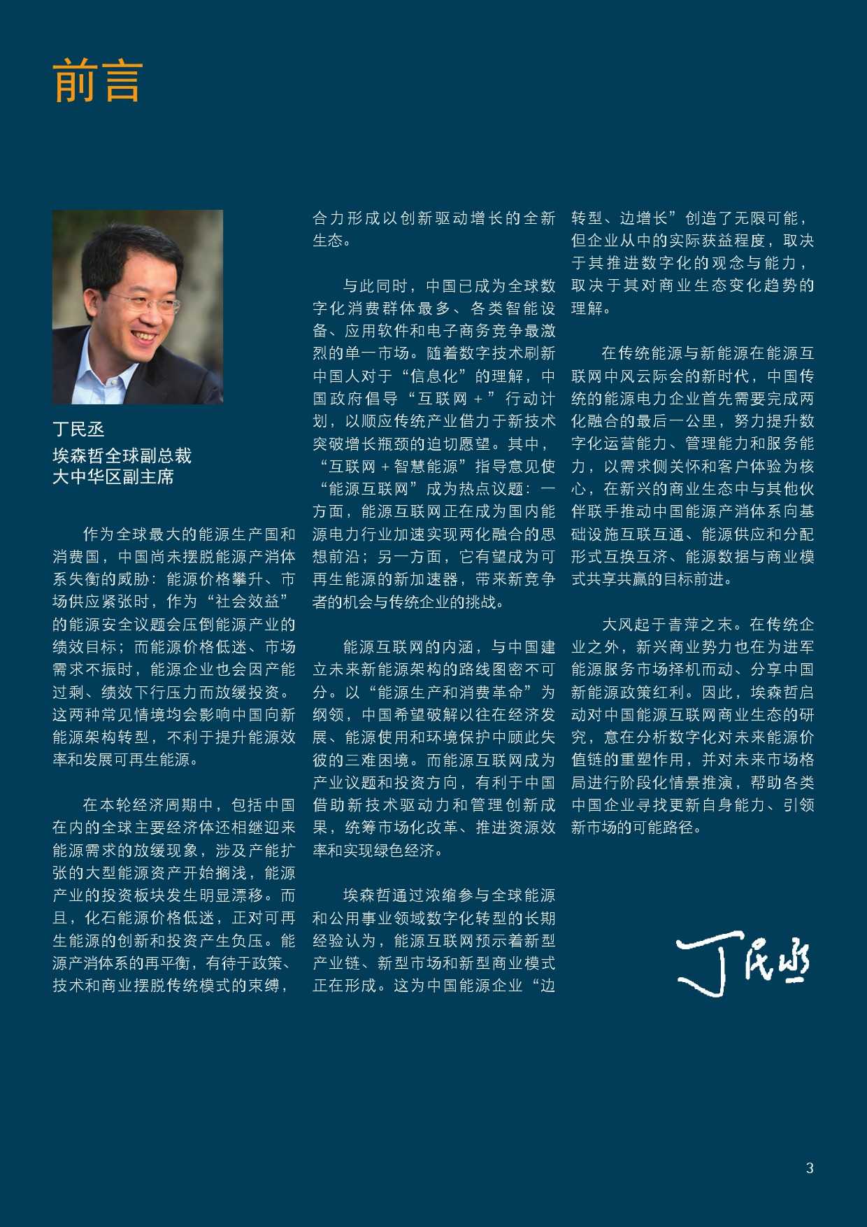 埃森哲全球副总裁丁民丞表示,能源互联网预示着新型产业链、新型市场和新型商业模式正在形成。这为中国企业“边转型、边增长”创造了无限可能,但企业从中的实际获益程度,取决于其推进数字化的观念与能力,取决于其对商业生态变化趋势的理解。