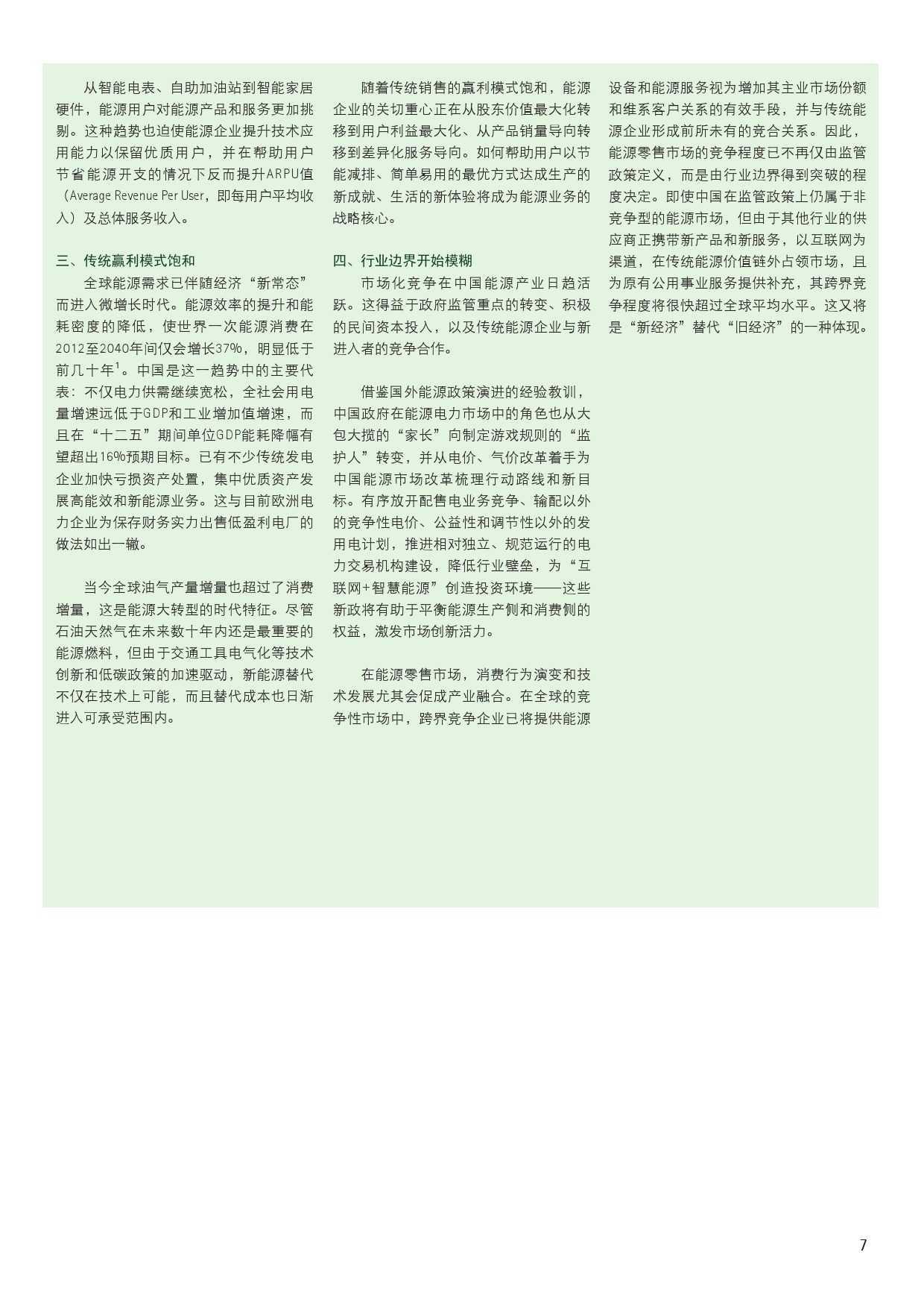 报告还认为,还有越来越多的跨界竞争者正在进入能源服务领域,如电信公司、安保公司、设备制造商等等。这些跨界企业首先会引入节能、智能化等技术改造现有产品,使能源设备、家电、电动汽车等具有节能和互联的特征。然后, 跨界企业会通过延伸服务,进入家庭智能设备管理、能源管理等服务领域。