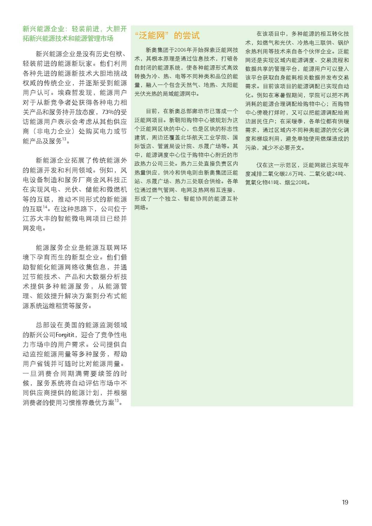 对新兴能源企业而言,埃森哲的调研发现,能源用户对从新竞争者处获得各种电力相关产品和服务持开放态度。新能源企业拓展了传统能源外的能源开发和利用领域,而能源服务企业则是能源互联网环境下孕育而生的新型企业,他们能提供从能源管理、能效提升解决方案到分布式能源系统运维租赁等服务。