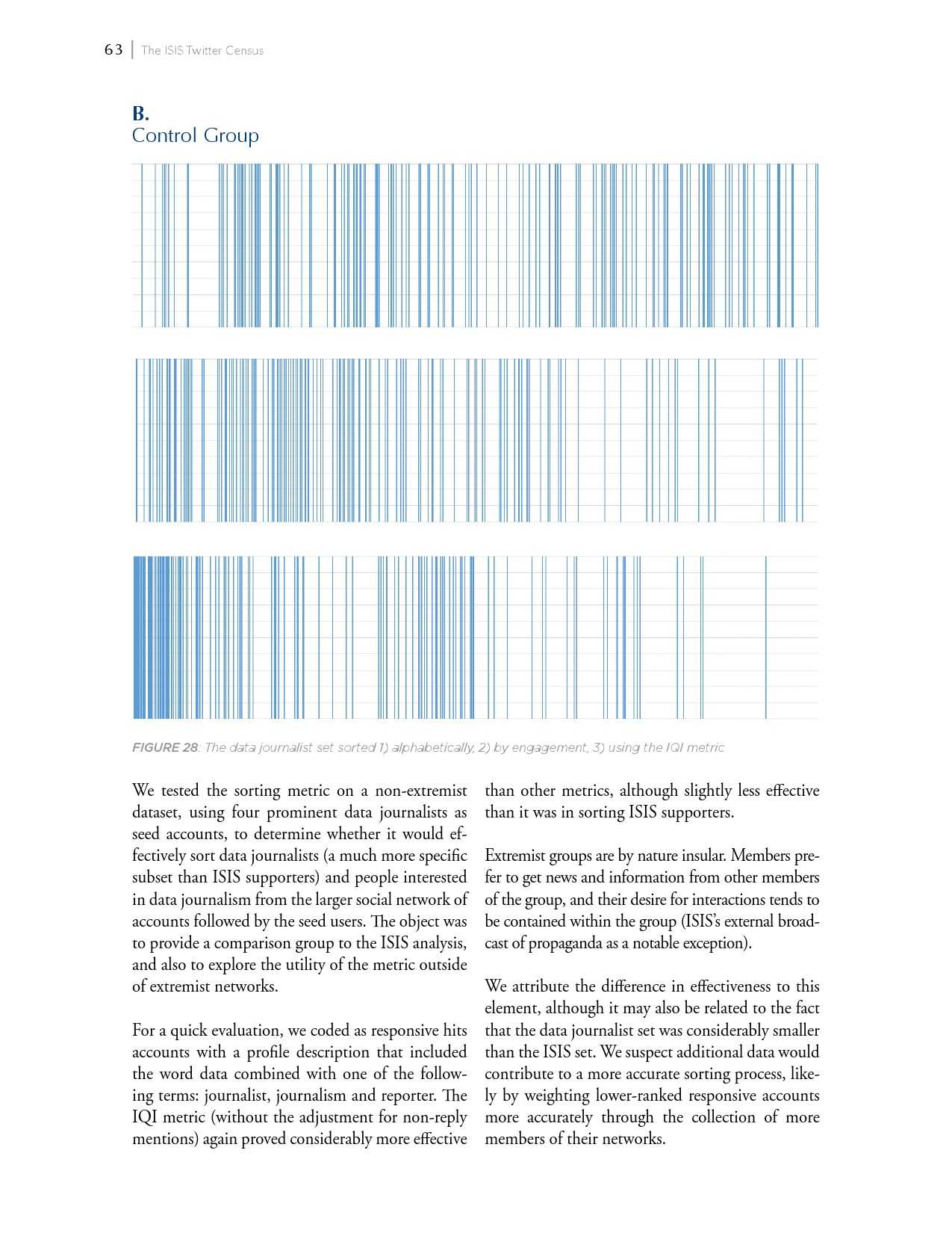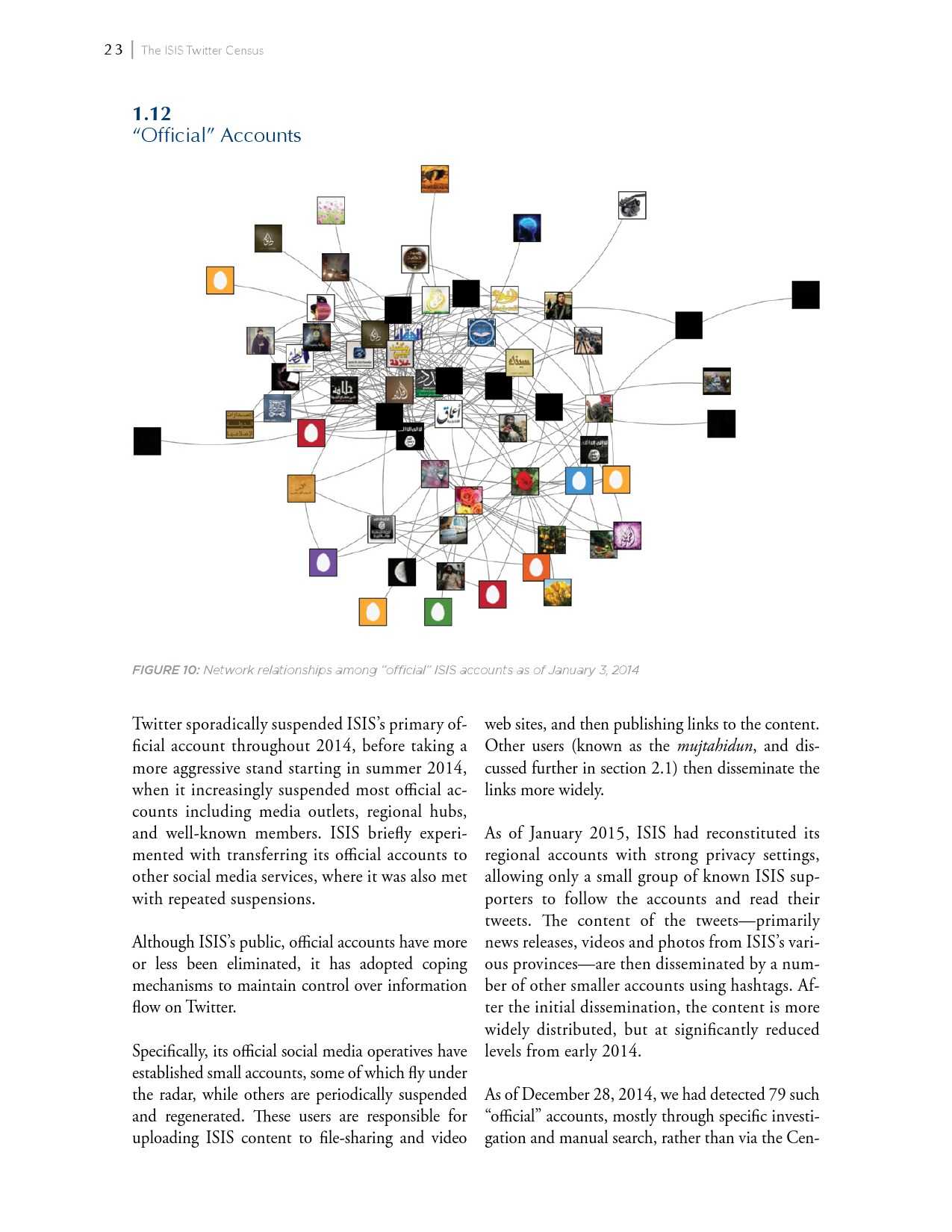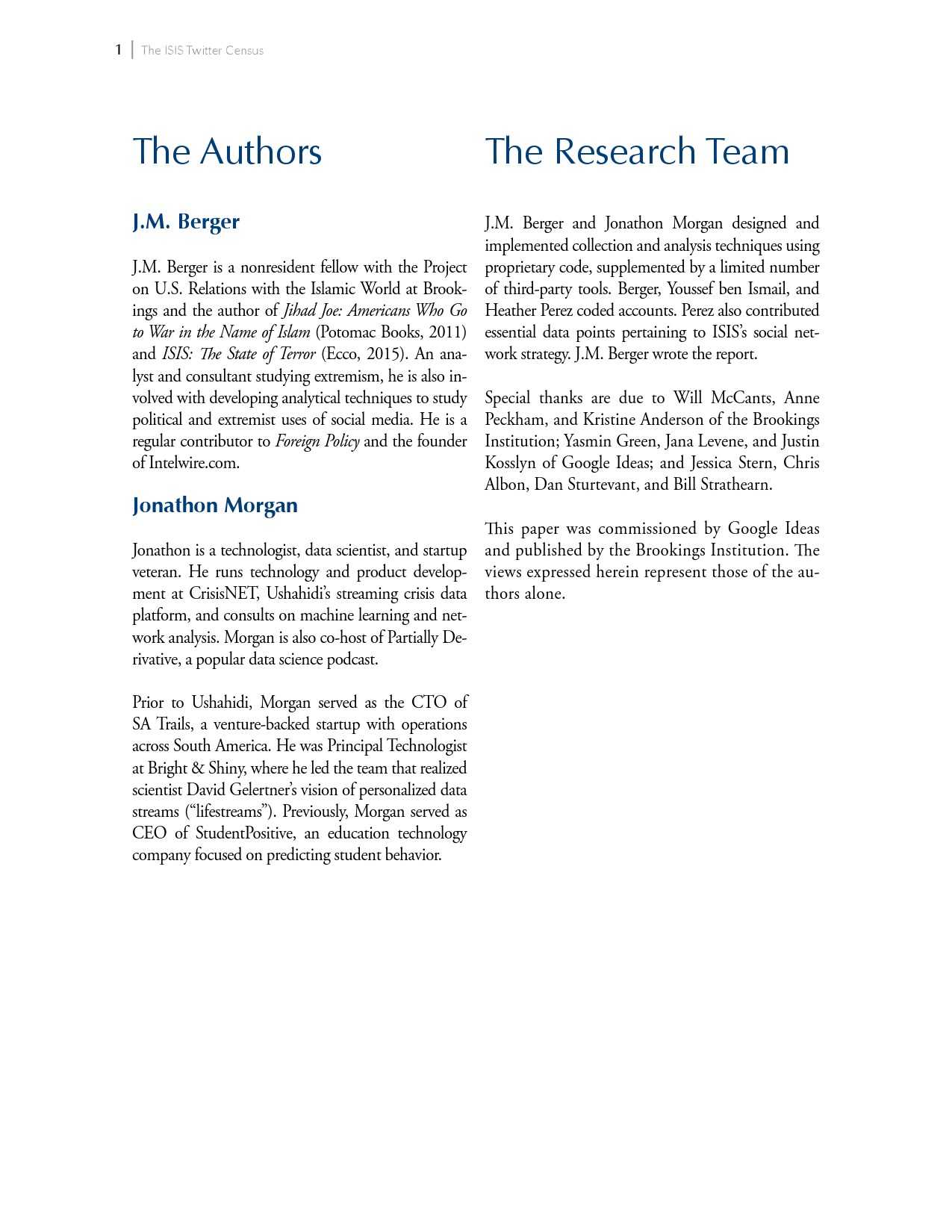 虽然各家媒体已大量讨论ISIS如何积极使用Twitter传播,但诸如“他们是谁”、“在哪里使用”等基础问题尚未得到解答。华盛顿布鲁金斯学会(Brookings Institution)研究员J·M·贝格尔(J.M. Berger)和技术专家、数据科学家乔纳森·摩根(Jonathon Morgan)于今年3月推出研究报告《ISIS Twitter普查》(The ISIS Twitter Census) 正是从此入手,基于20,000个ISIS支持者的Twitter帐号分析,详细解码ISIS应用Twitter的基本细节。