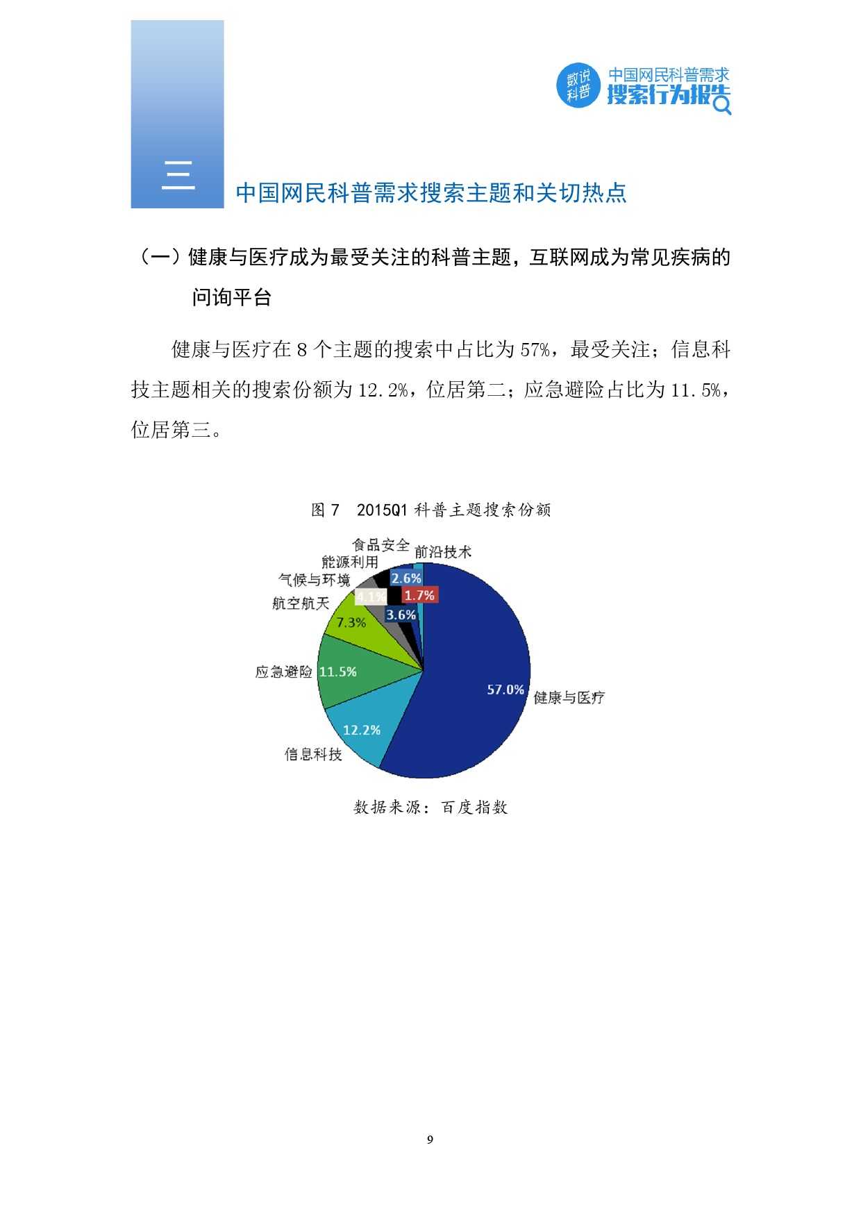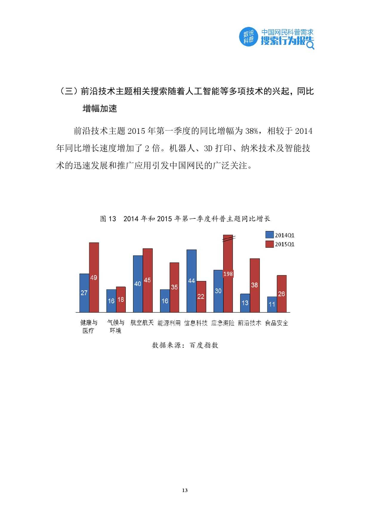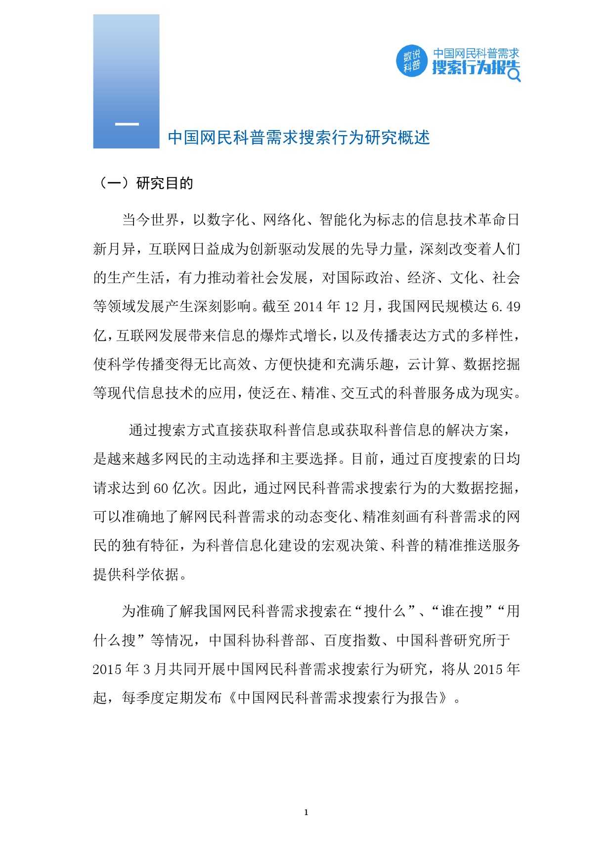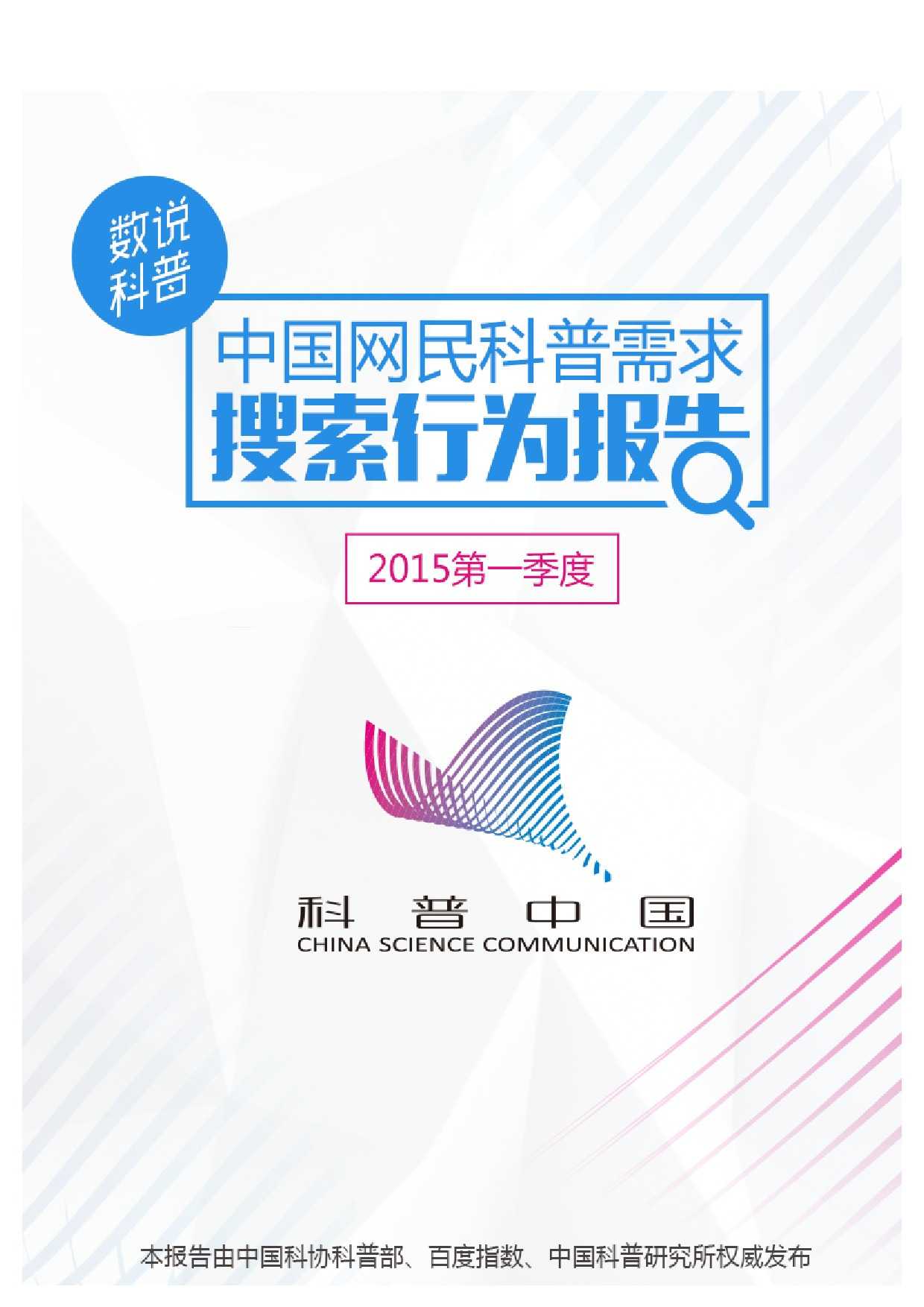 百度:2015年Q1中国网民科普需求搜索行为报告 更多阅读:百度:2015年Q2中国网民科普需求搜索行为报告中国科协:2017年第二季度中国网民科普需求搜索行为报告百度数据研究:2013年Q3基金行业搜索行为研究360:2015年医疗行业搜索行为研究报告百度财报:2011年Q3百度净利润2.950亿美元 同比增79.8%2015-2016百度彩妆行业报告百度:2015年中国教育行业大数据报告百度:2014年8月移动游戏平台数据报告百度研究中心:2012年度运动服饰行业用户搜索报告Google:探究消费的本地搜索行为华兴:智能家居拐点已来,小米之后谁领潮流百度大数据等:2015中国自由行市场研究报告百度:2012上半年社会化媒体分享行业报告百度:2012年第一季度移动互联网发展趋势报告百度数据:2011年Q3百度移动互联网发展趋势报告