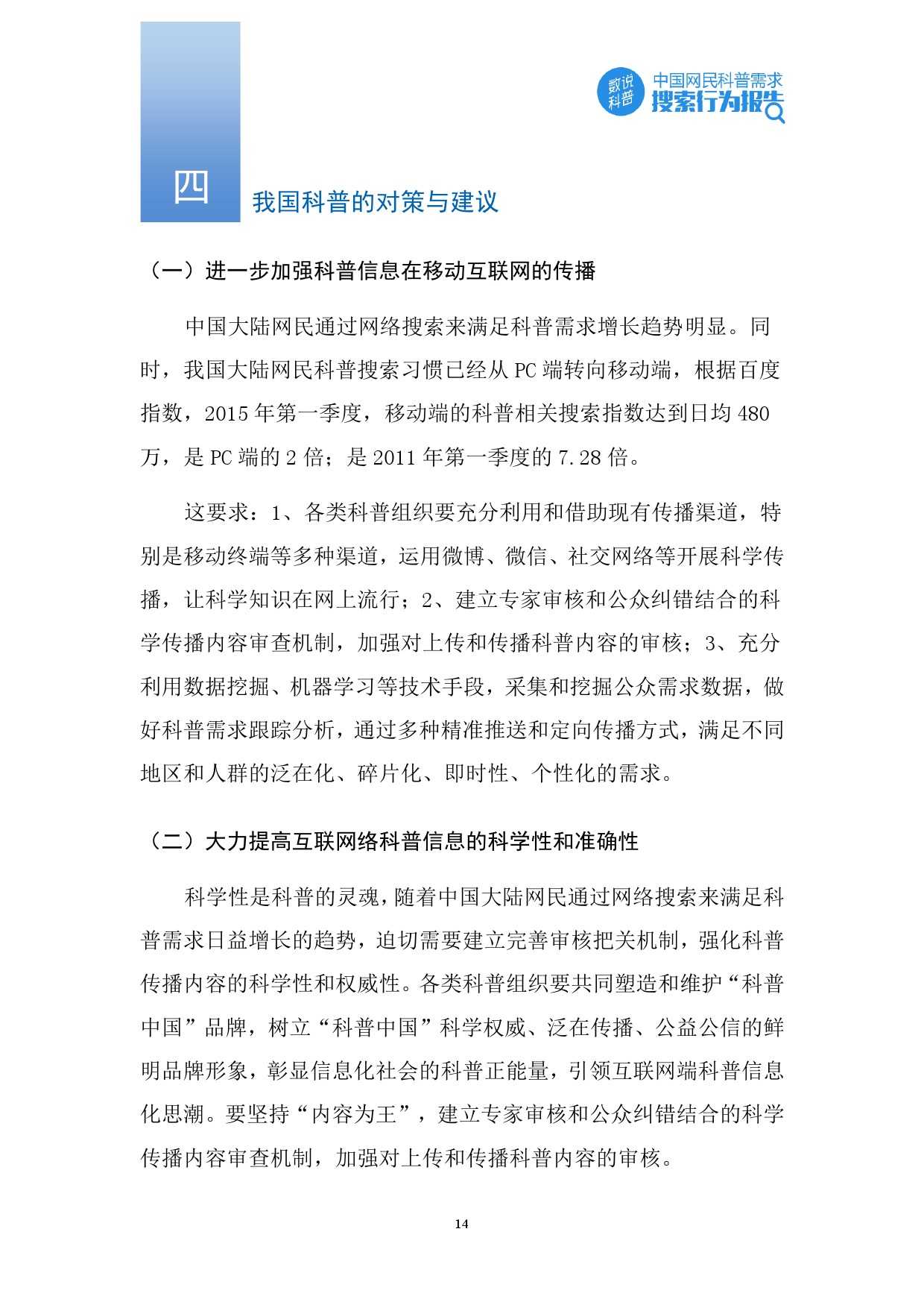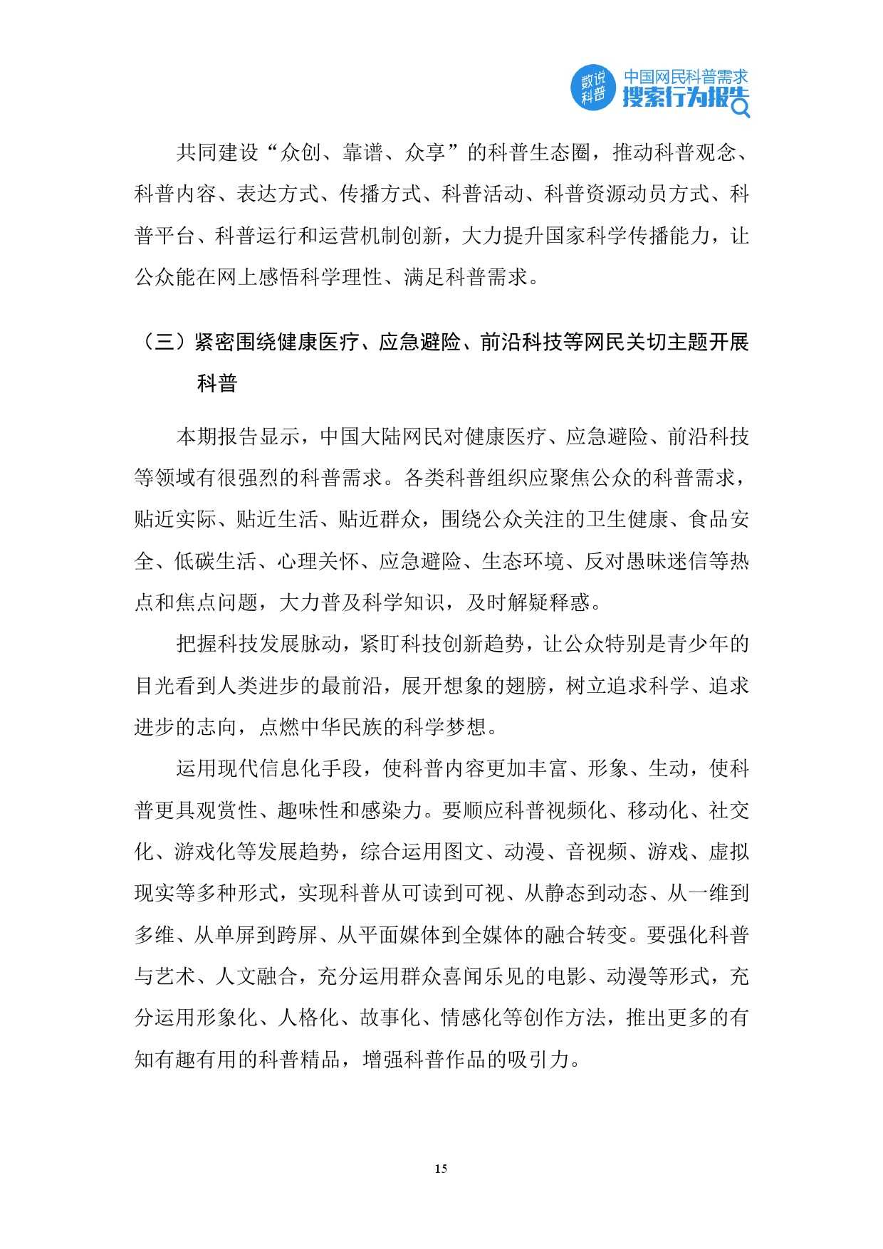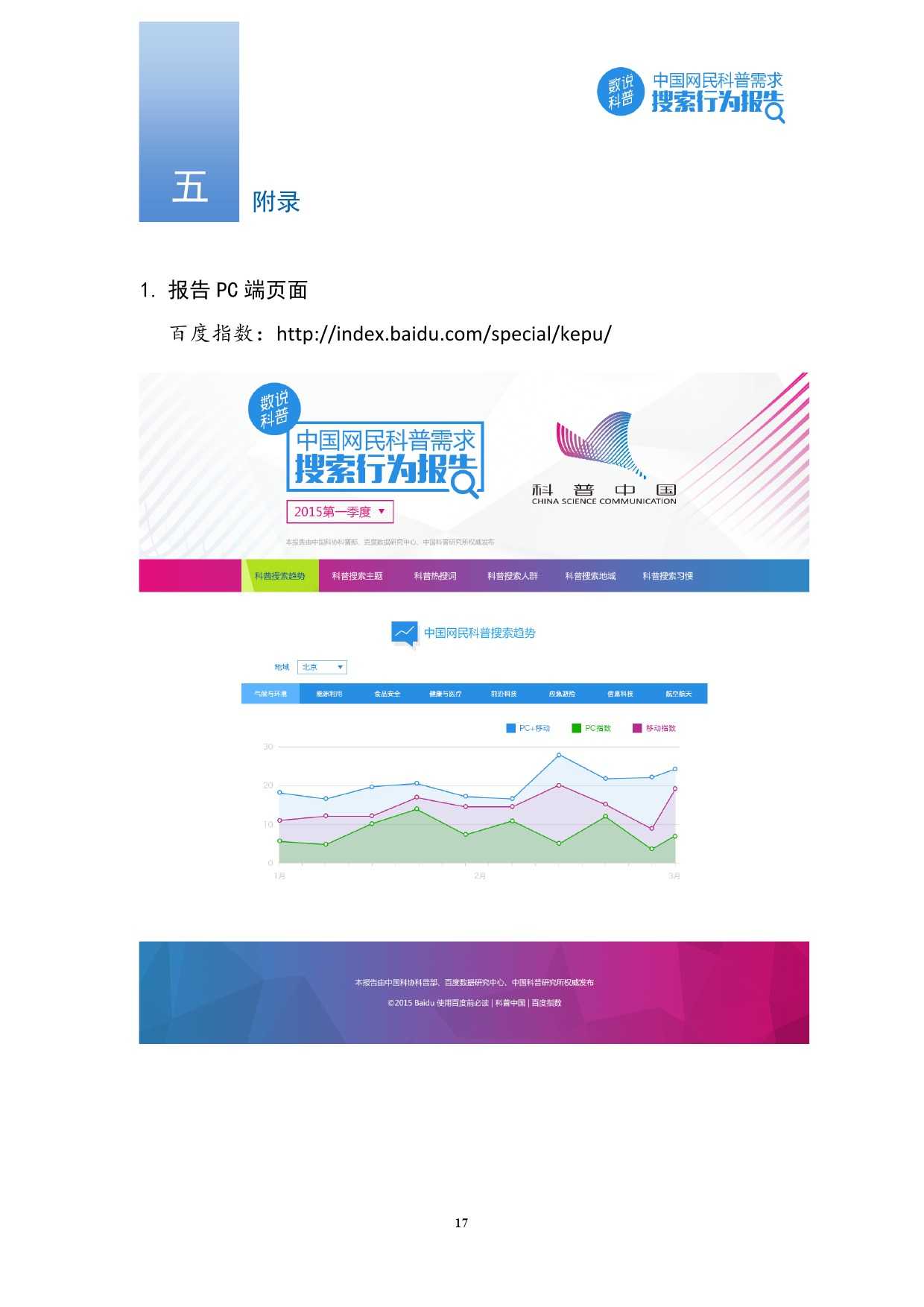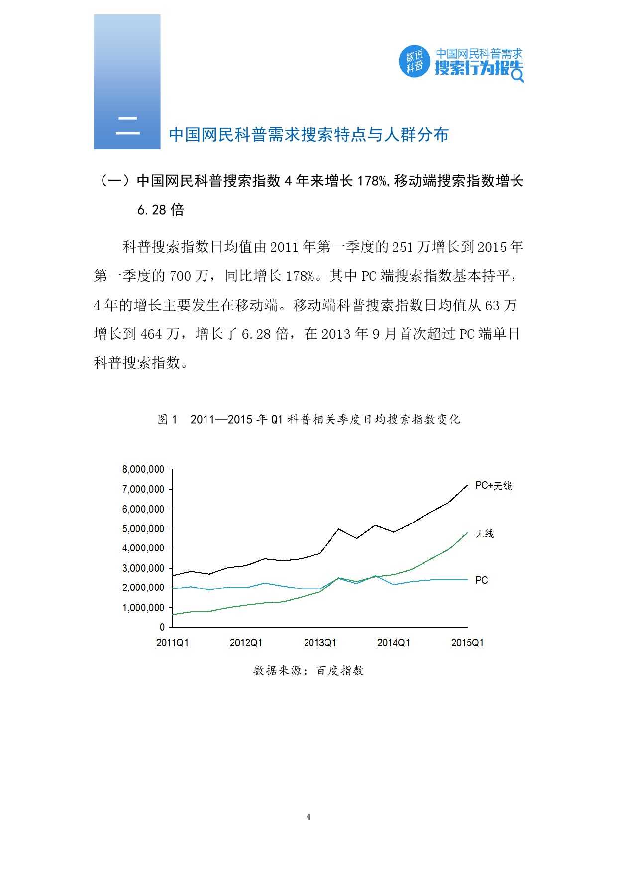 百度:2015年Q1中国网民科普需求搜索行为报告 更多阅读:百度:2015年Q2中国网民科普需求搜索行为报告中国科协:2017年第二季度中国网民科普需求搜索行为报告百度数据研究:2013年Q3基金行业搜索行为研究360:2015年医疗行业搜索行为研究报告百度财报:2011年Q3百度净利润2.950亿美元 同比增79.8%2015-2016百度彩妆行业报告百度:2015年中国教育行业大数据报告百度:2014年8月移动游戏平台数据报告百度研究中心:2012年度运动服饰行业用户搜索报告Google:探究消费的本地搜索行为华兴:智能家居拐点已来,小米之后谁领潮流百度大数据等:2015中国自由行市场研究报告百度:2012上半年社会化媒体分享行业报告百度:2012年第一季度移动互联网发展趋势报告百度数据:2011年Q3百度移动互联网发展趋势报告