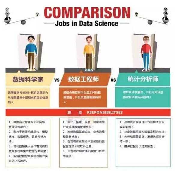 在中国,大数据的应用才刚刚萌芽,很少有全才来完成所有环节。于是每家公司根据自己已有的资源对大数据工作提出了不同的要求:有的强调数据库编程、有的突出应用数学和统计学知识、有的则要求有咨询公司或投行相关的经验、有些是希望能找到懂得产品和市场的应用型人才。因此这群与大数据打交道的人有了多样的头衔:数据科学家、数据工程师、大数据专家、数据研究员、统计分析师等,我们将其统称为“大数据工程师”。