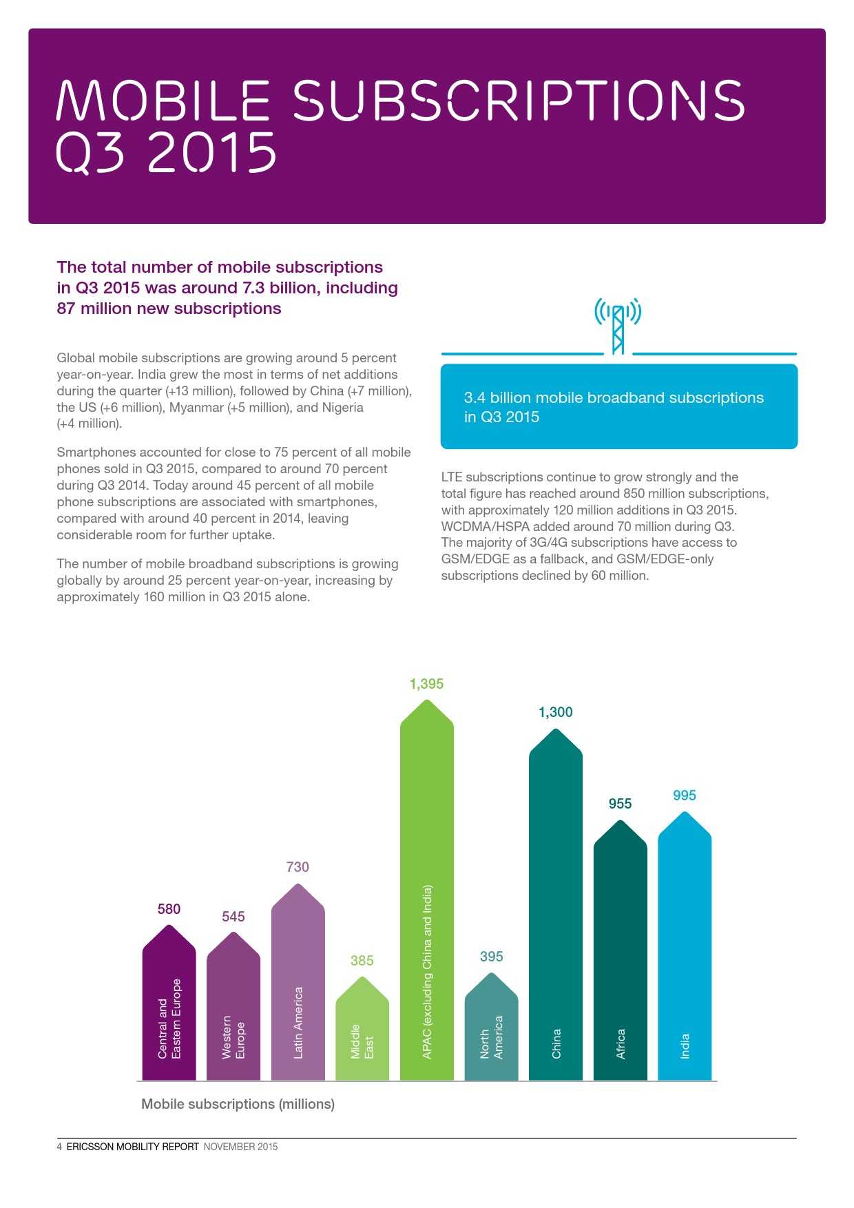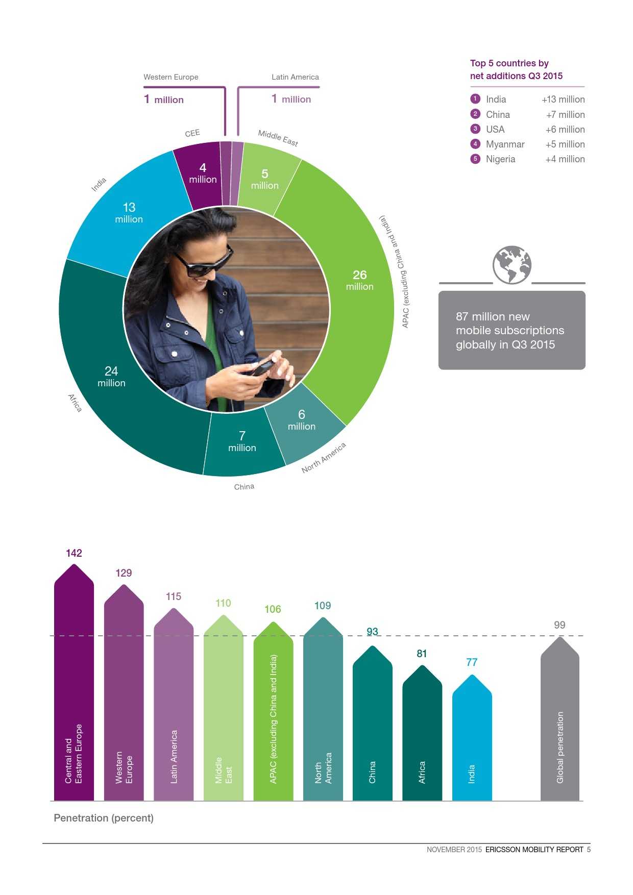 最新的《爱立信移动市场报告》的其他亮点包括:
