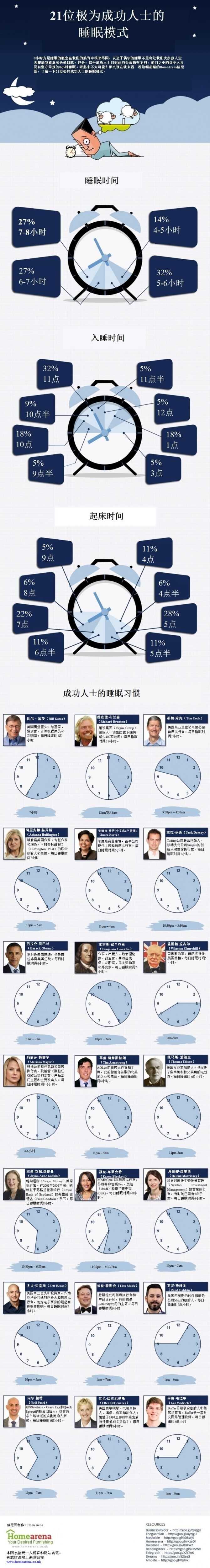 以下是历史上21位极为成功的人士的睡眠习惯。