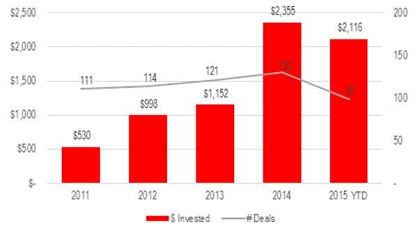 图译:截至 2015 年 9 月 30 日的开发者工具融资额(数据来源:CB Insights 和 Redpoint Ventures)