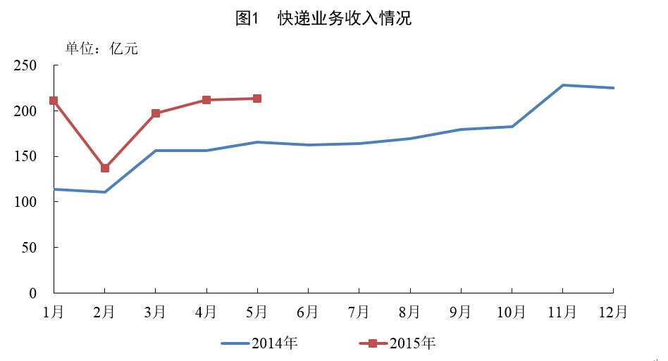 5月份,快递业务量完成16.1亿件,同比增长44.2%;业务收入完成213.6亿元,同比增长29.2%。