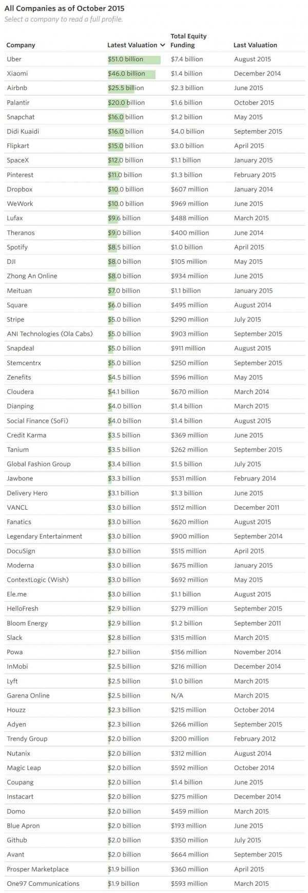 我们知道的是:独角兽公司里很多公司会碰到问题。来自华尔街日报的这张信息图表也证明了这一点: