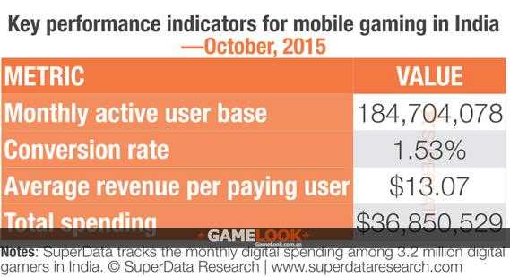 用户行为向智能机的转变是印度手游市场增长的主要原因,在印度玩家当中,三星、索尼和Micromax是最受欢迎的品牌。为了增长市场份额,苹果用了2年的时间在该地区投入了大量iPhone广告,希望说服人们把功能机换成该公司的智能机和平板。如今,印度的手游MAU用户达到了1.85亿,虽然这个规模已经是非常大的,但玩家们的付费转化率只有1.53%,平均每付费用户消费额只有13.07美元,10月份饮醋手游市场总收入为368.5万美元。其实这并不让人奇怪,因为该地区的人们并不具备如此之高的收入去投入到娱乐活动当中,至少和其他市场仍旧有相当明显的差距。