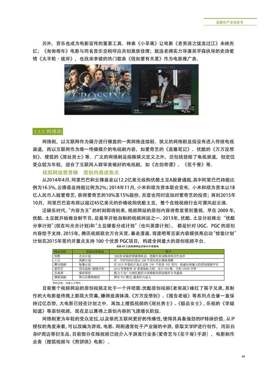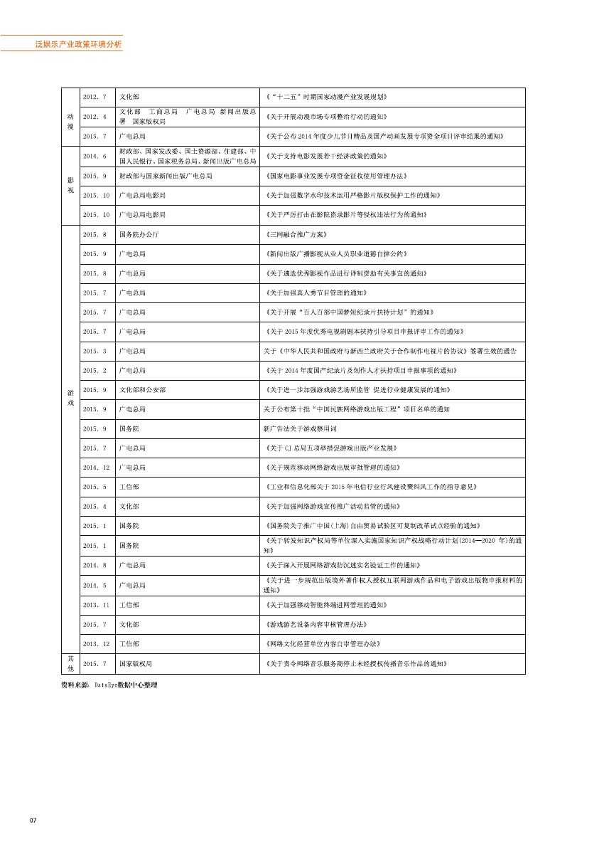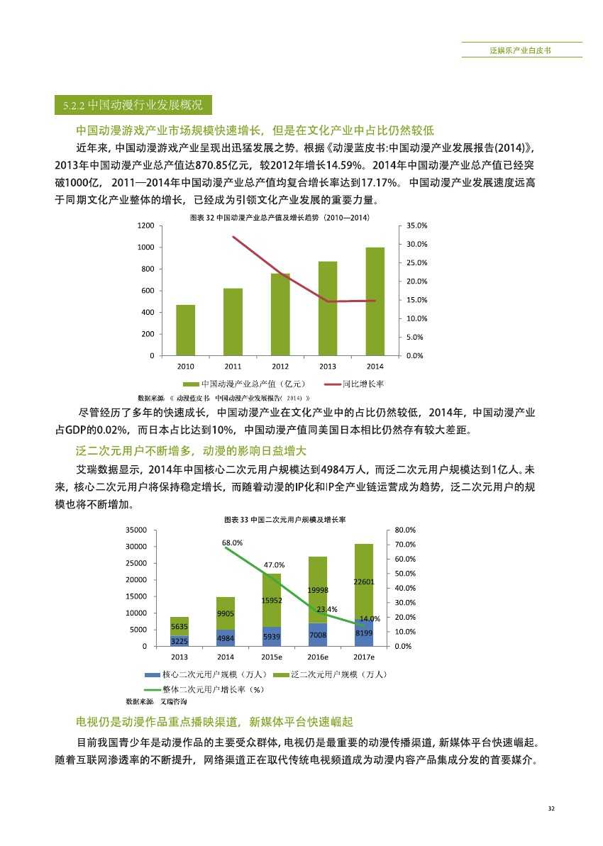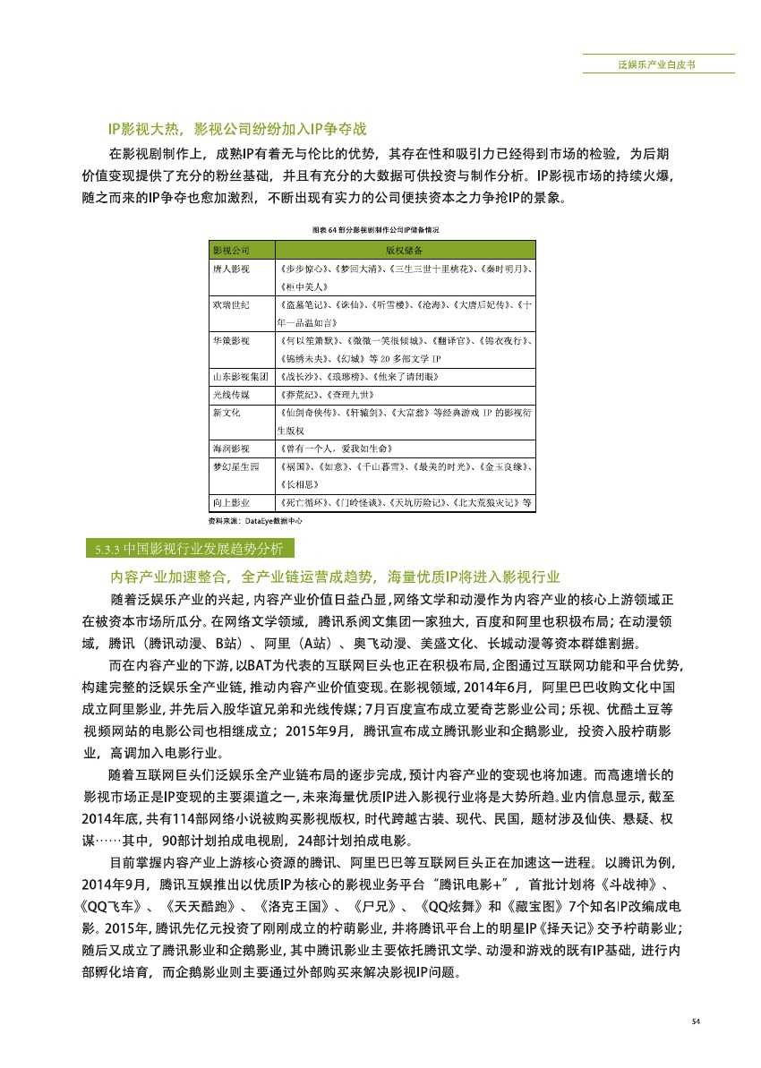 在“互联网+”时代,文化产品的连接融合现象明显。文学、动漫、影视、游戏、音乐、综艺节目等娱乐形式不再孤立发展,而是可以协同打造同一个优质IP,构建一个泛娱乐产业新生态。其中文学、动漫提供丰富的原创IP资源;影视则作为这一链条中的放大器,将粉丝数量成倍放大;同时影视和游戏也是目前IP最佳的变现渠道,可以反哺其他几个环节,当然其中各个环节上下游关系可相互改变。目前在以BAT为首的互联网巨头的引领下,国内泛娱乐产业生态链已初步构建。