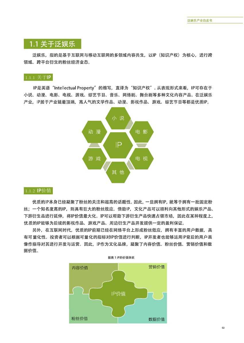 IP是英语“Intellectual Property”的缩写,直译为“知识产权”。从表现形式来看,IP可存在于小说、动漫、电影、电视、游戏、综艺节目、音乐、网络剧、舞台剧等多种文化内容产品。在泛娱乐产业,IP居于产业链最顶端,高人气的文学作品、动漫、影视作品、游戏、综艺节目等都是优质IP。