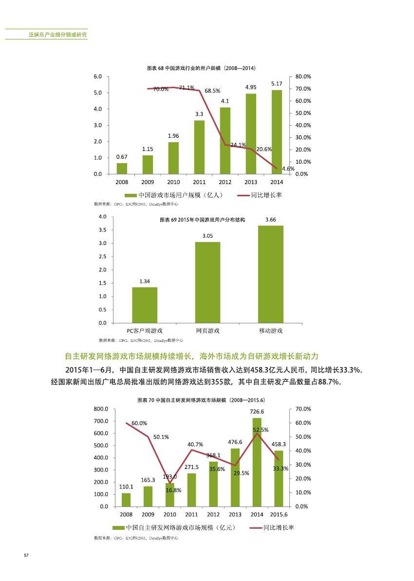 截止2015年6月,中国移动游戏市场规模达到209.3亿元人名币,同比增长67.2%,而用户规模达到3.66亿,已经超过PC端游和网页游戏用户数。移动游戏的市场占有率和用户规模持续上升,已经成为整个游戏行业的主要驱动力。