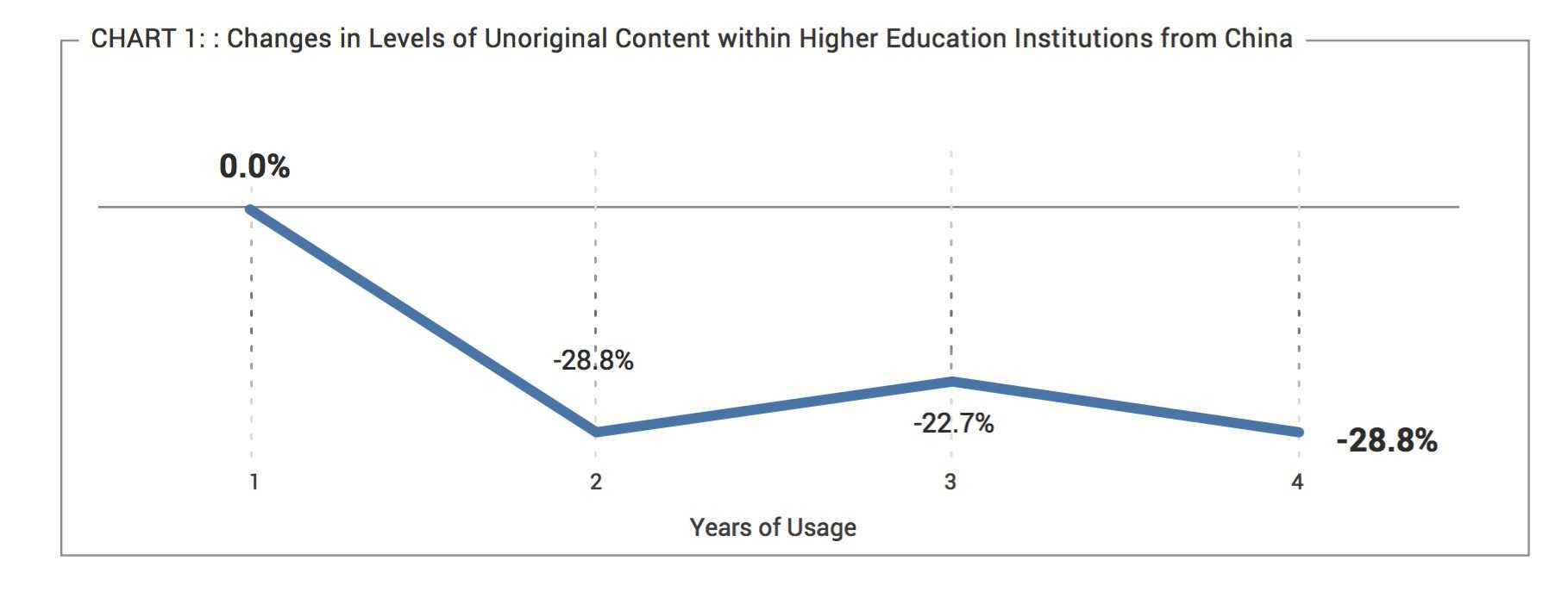 Turnitin调查对于来自15个国家的1400多万份提交作品进行了3个方面的检查:在特定国家非原创内容随时间变化而发生的改变;Turnitin作为学生写作的一种反馈工具的发展;以及该系统中较高程度非原创内容与其他学生论文匹配的内容比例。