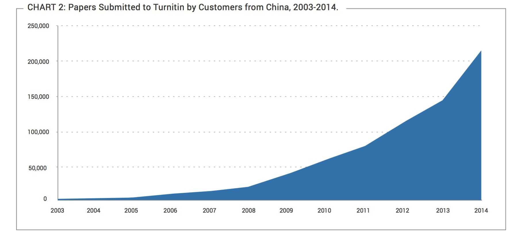 特别值得一提的是,在2011年至2014年期间,中国高等教育院校在非原创写作方面减少29%且网上评分论文数量增长125%。