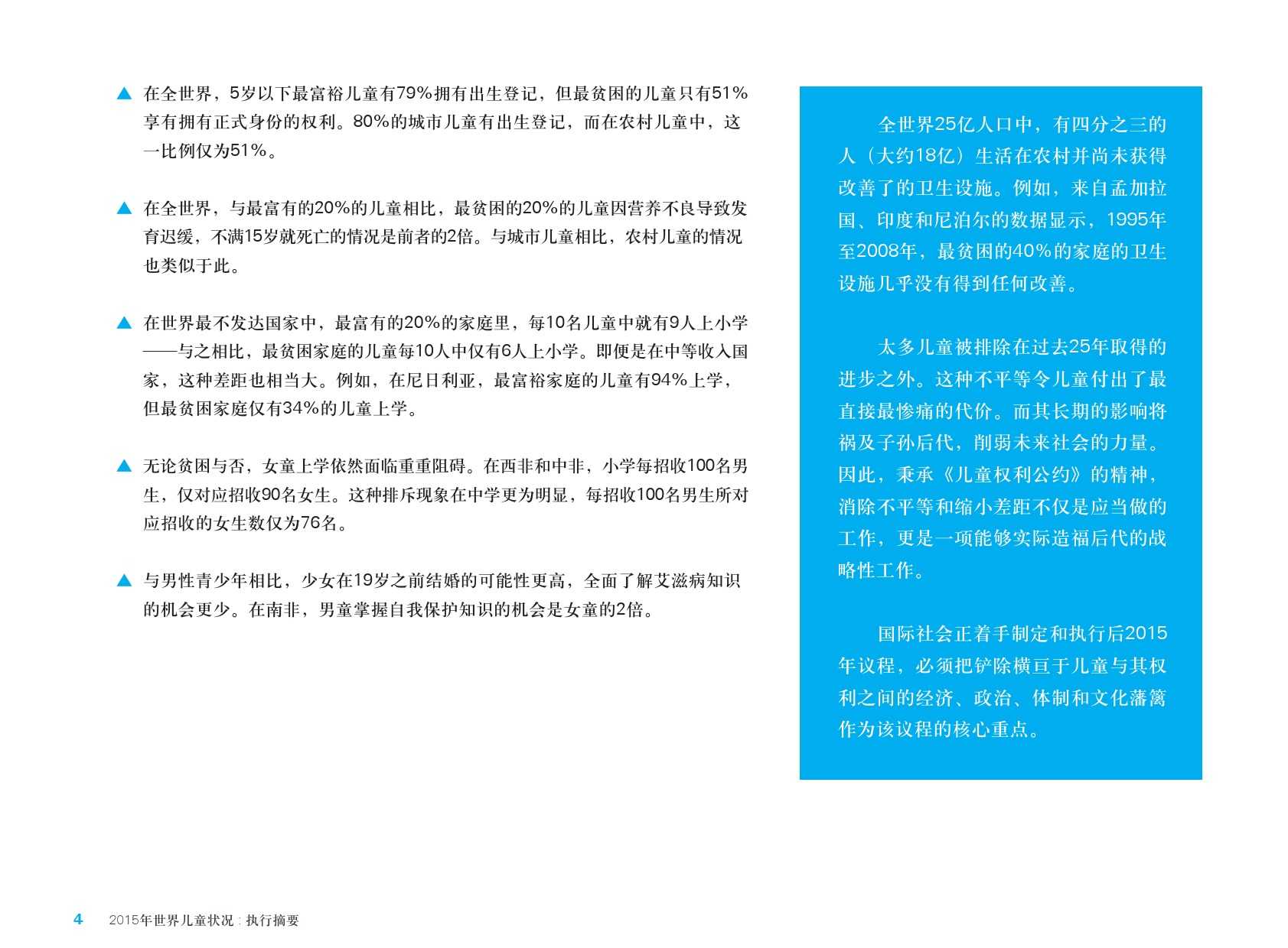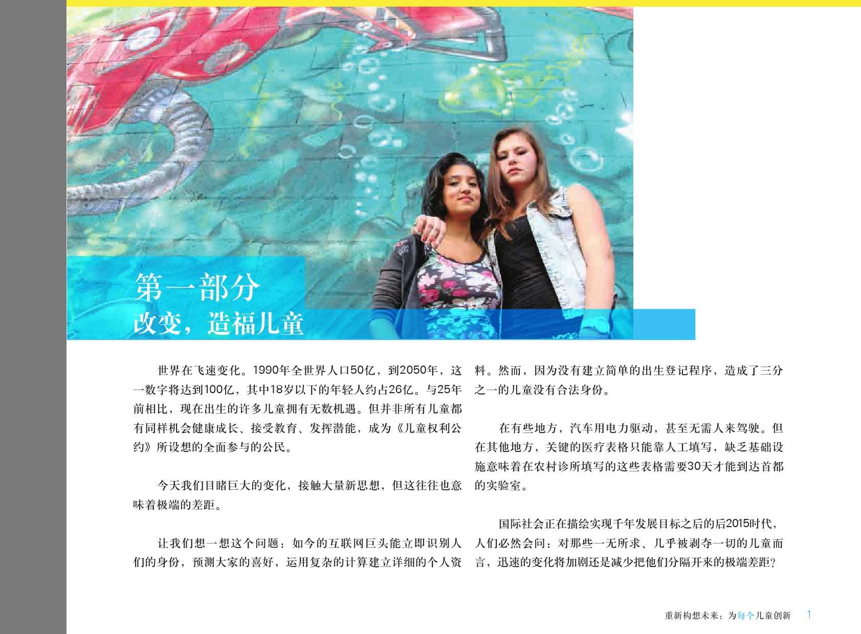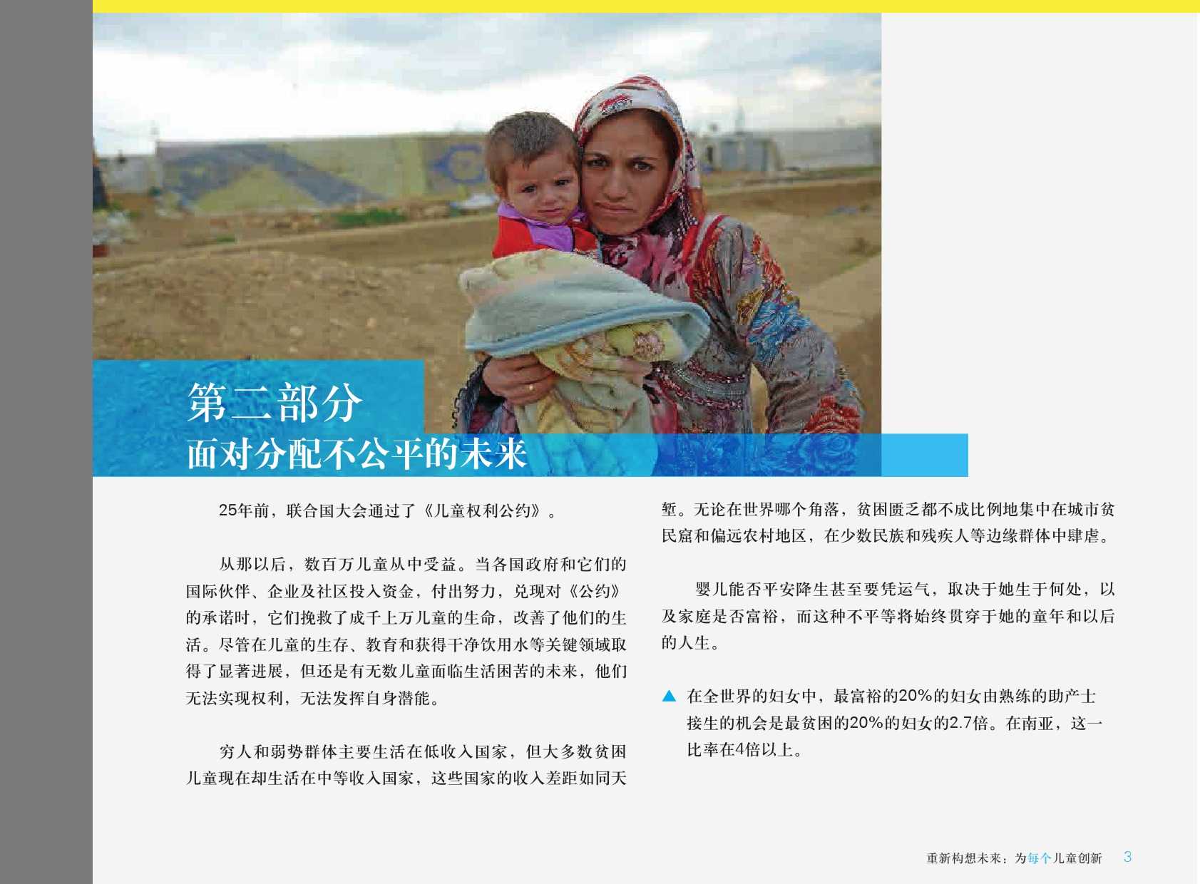 联合国儿童基金会:2015年世界儿童状况 更多阅读:2017年世界儿童状况:数字时代的儿童联合国儿童基金会:2015年全球590万儿童死亡 死亡率大幅下降联合国儿童基金会:调查显示30个国家超过三分之一的年轻人称是网络欺凌的受害者2015年留美中国学生现状白皮书中怡康:2015年厨卫市场年中盘点2015年全球营养报告武书连:2015年中国大学排行榜西南财大&成都红娘:2015年成都婚恋调查影响世界:了解富国儿童幸福的构成报告联合国儿童基金会:2023年儿童死亡率报告联合国儿童基金会:2023年全球儿童报告联合国儿童基金会:2024年全球儿童报告2015年生活服务类移动应用白皮书蚂蜂窝:2015年全球旅游购物报告2015年在线教育用户行为调查报告