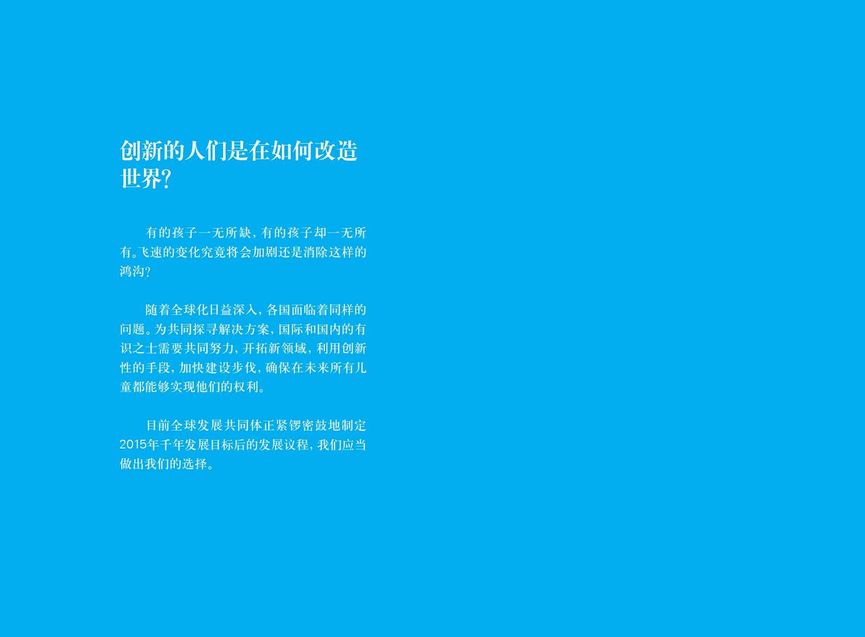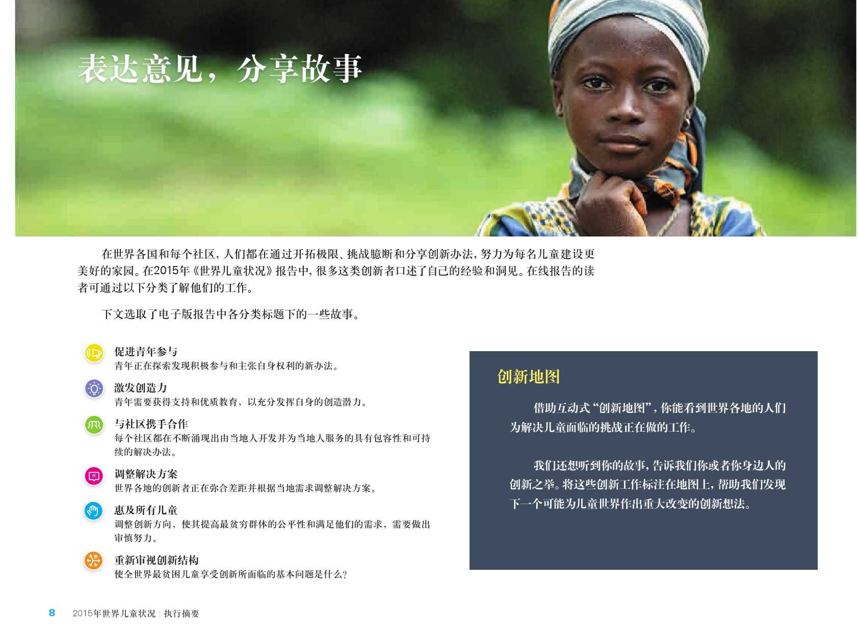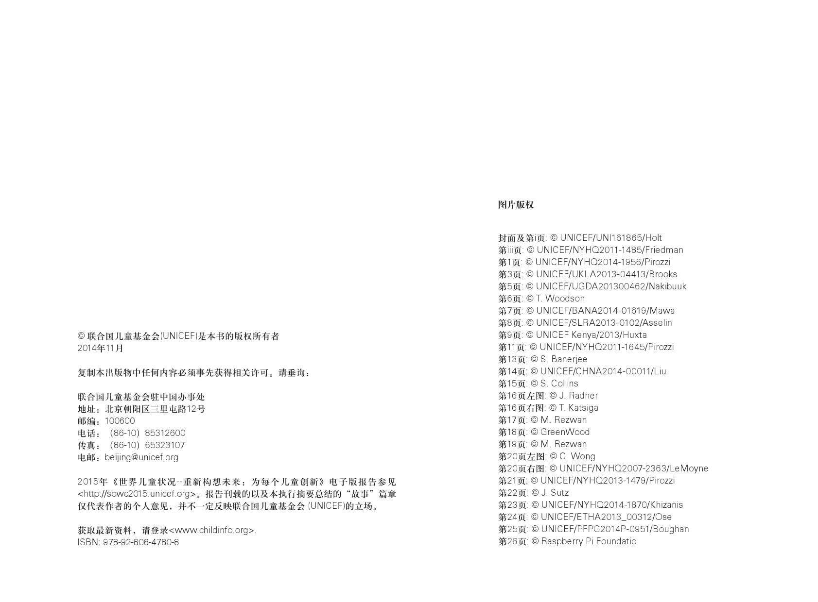 联合国儿童基金会:2015年世界儿童状况 更多阅读:2017年世界儿童状况:数字时代的儿童联合国儿童基金会:2015年全球590万儿童死亡 死亡率大幅下降联合国儿童基金会:调查显示30个国家超过三分之一的年轻人称是网络欺凌的受害者2015年留美中国学生现状白皮书中怡康:2015年厨卫市场年中盘点2015年全球营养报告武书连:2015年中国大学排行榜西南财大&成都红娘:2015年成都婚恋调查影响世界:了解富国儿童幸福的构成报告联合国儿童基金会:2023年儿童死亡率报告联合国儿童基金会:2023年全球儿童报告联合国儿童基金会:2024年全球儿童报告2015年生活服务类移动应用白皮书蚂蜂窝:2015年全球旅游购物报告2015年在线教育用户行为调查报告