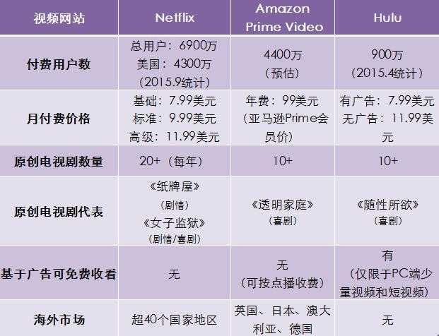 1.Netflix、亚马逊视频和Hulu是美国三家最大的以版权剧为内容核心的视频网站,它们对自制剧内容的投入正不断加大。